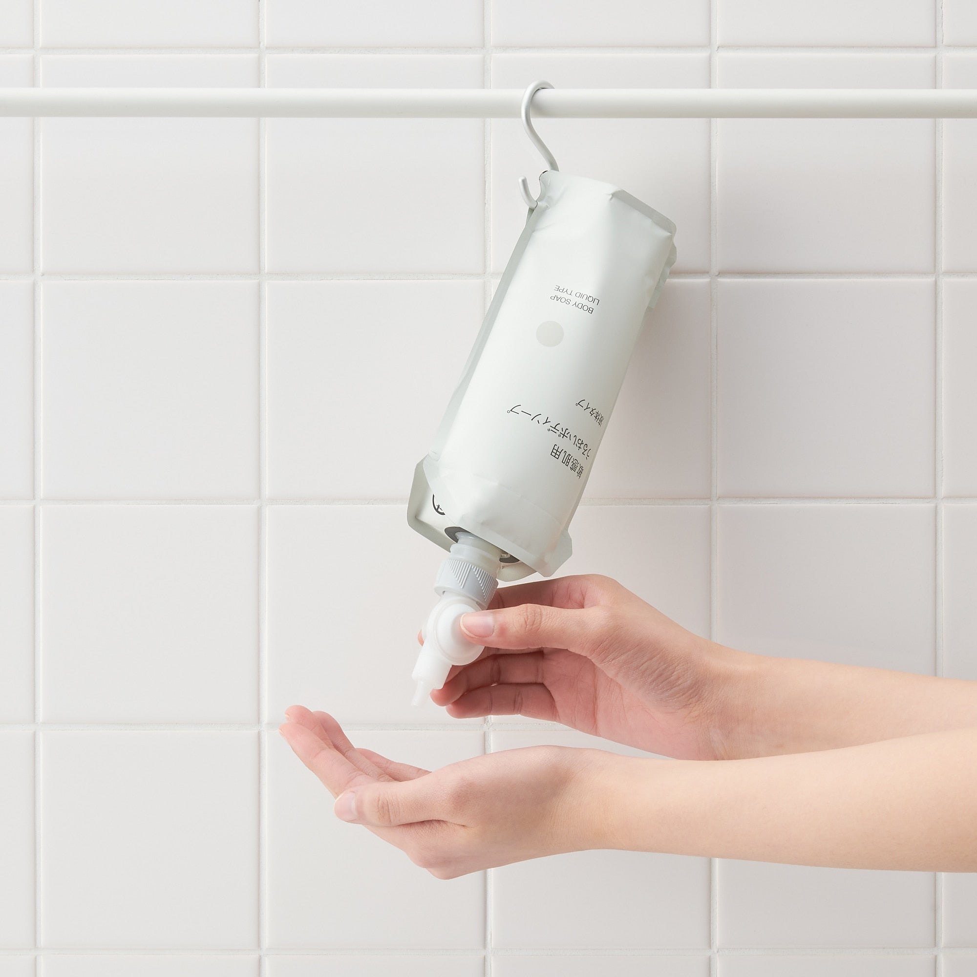 無印良品のシャンプー・コンディションナー・ボディソープ等の詰替えパウチに取り付けて使えるノズルです。