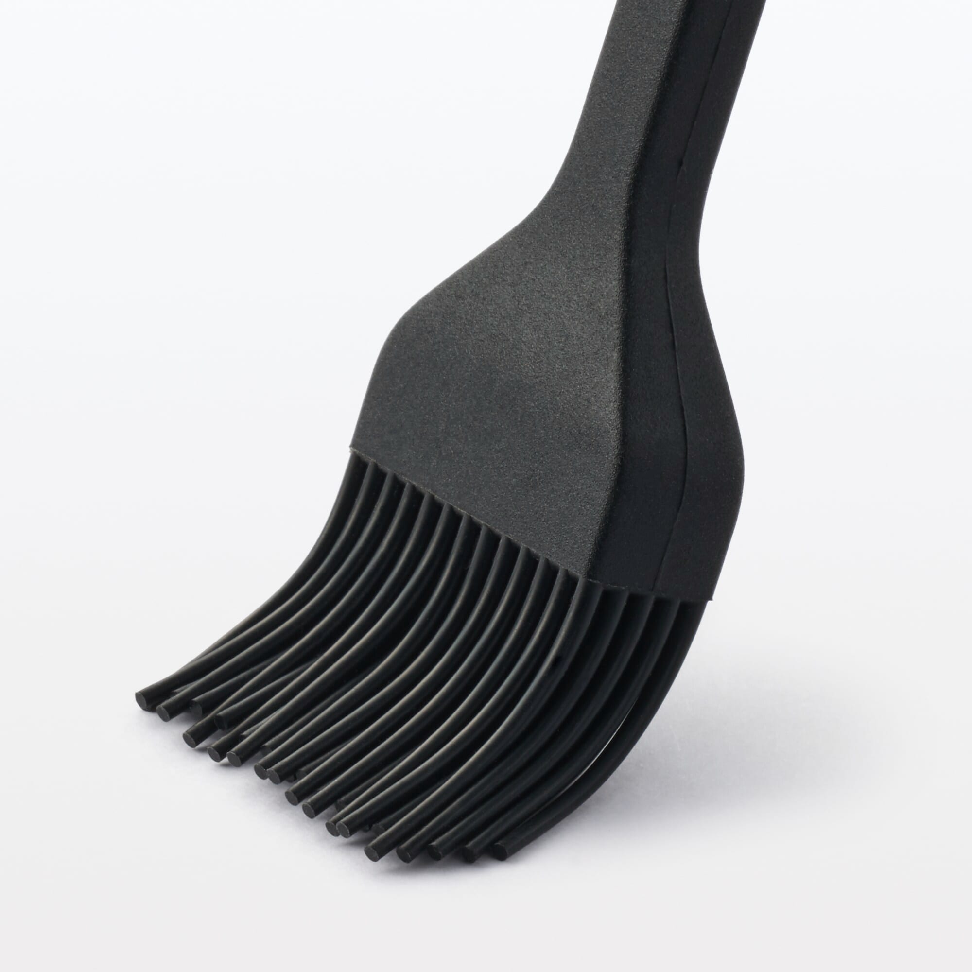 耐熱温度が高く弾力性もあるシリコーンの特性を活かして作りました。油を引いたり調味料や卵黄などの塗布に適しています。食洗機も使えるので洗いやすく清潔に保てます。色は食材による色移りが目立ちにくいよう黒色にしています。