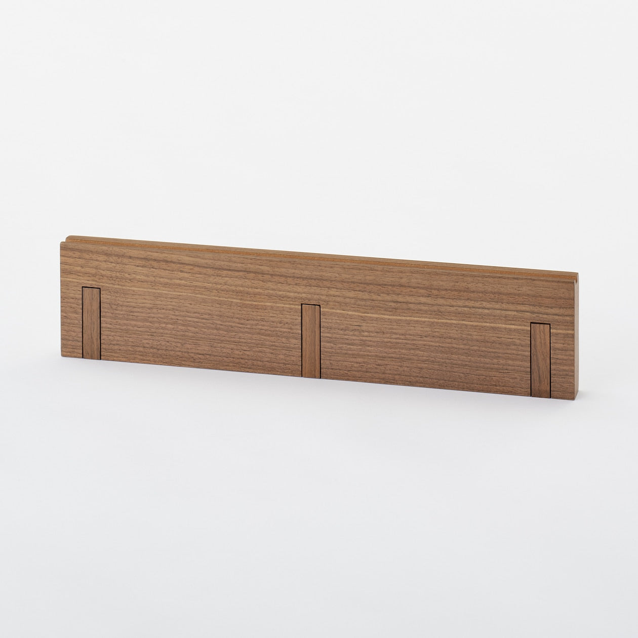 石膏ボードの壁であればどこでも付けられるハンガーラックです。小物を掛けていない場合はフックを収納できます。耐荷重は全体で5kg(1フック2kg)までです。ものをかけていないときはフック部分を収納できるので、厚みが2.5㎝と薄く邪魔になりません。玄関では掃除用品やコートブラシ、靴べらなどをまとめておくこともできます。