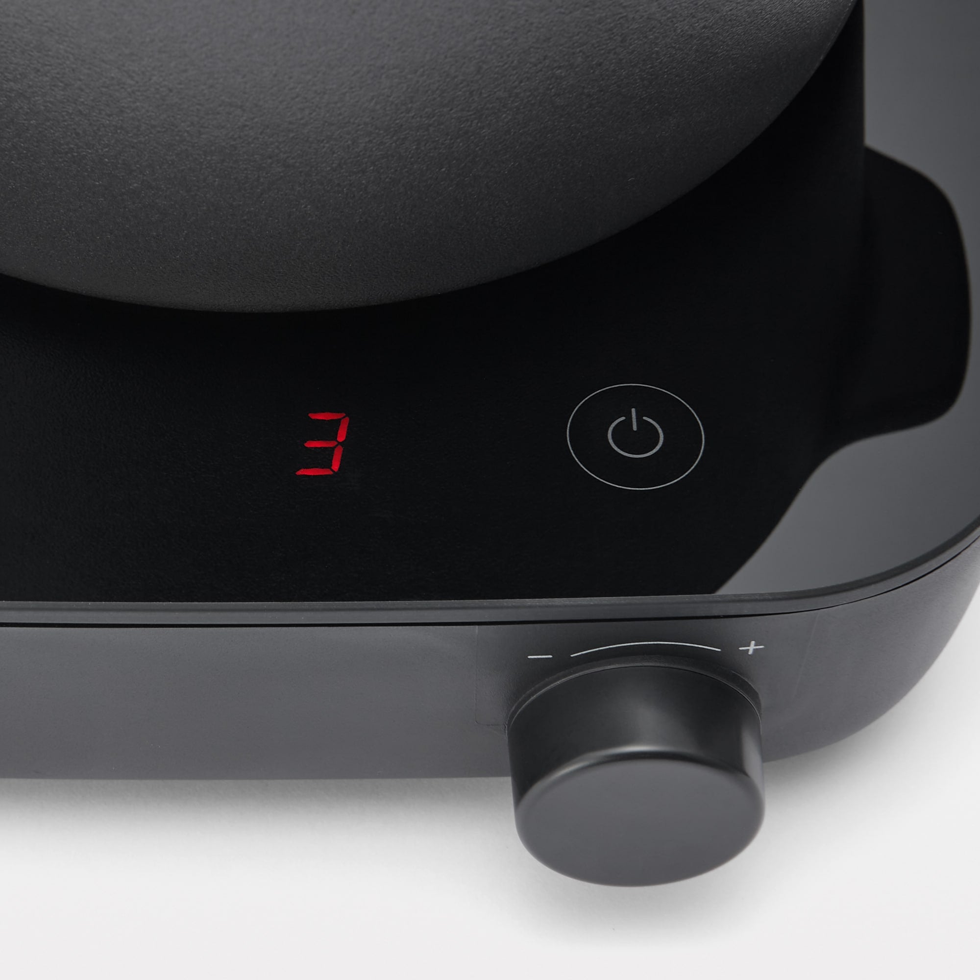 使いたい時にすぐに使えるように、テーブルの上などに出しっぱなしにできるコンパクトさに仕上げました。丸形ダイアルで直感的に温度調節ができます。※IH調理器は材質や形状により使える鍋と使えない鍋があります。