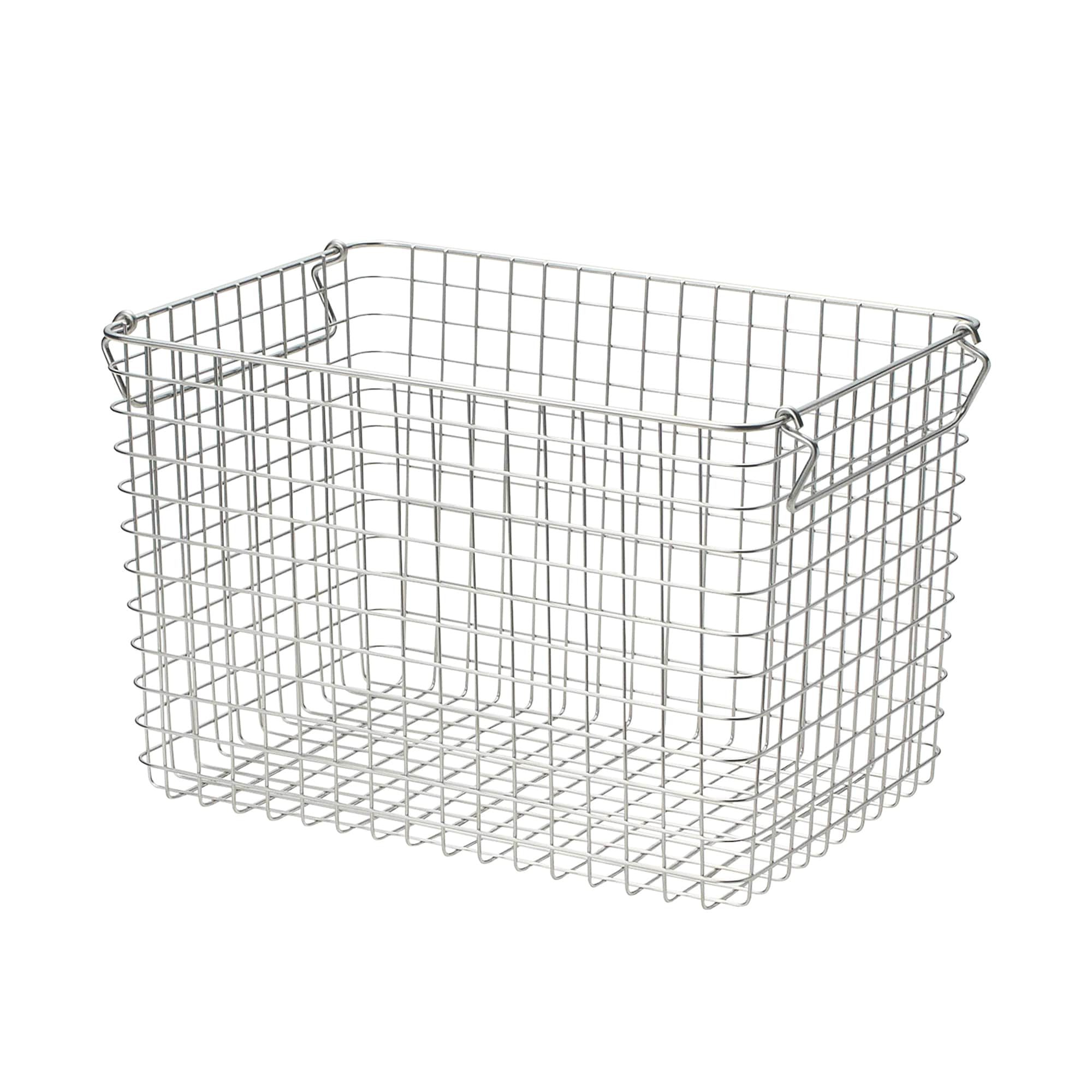 錆びにくいステンレスを使用したバスケットです。持ち手を内側におさめると積み重ねもできます。