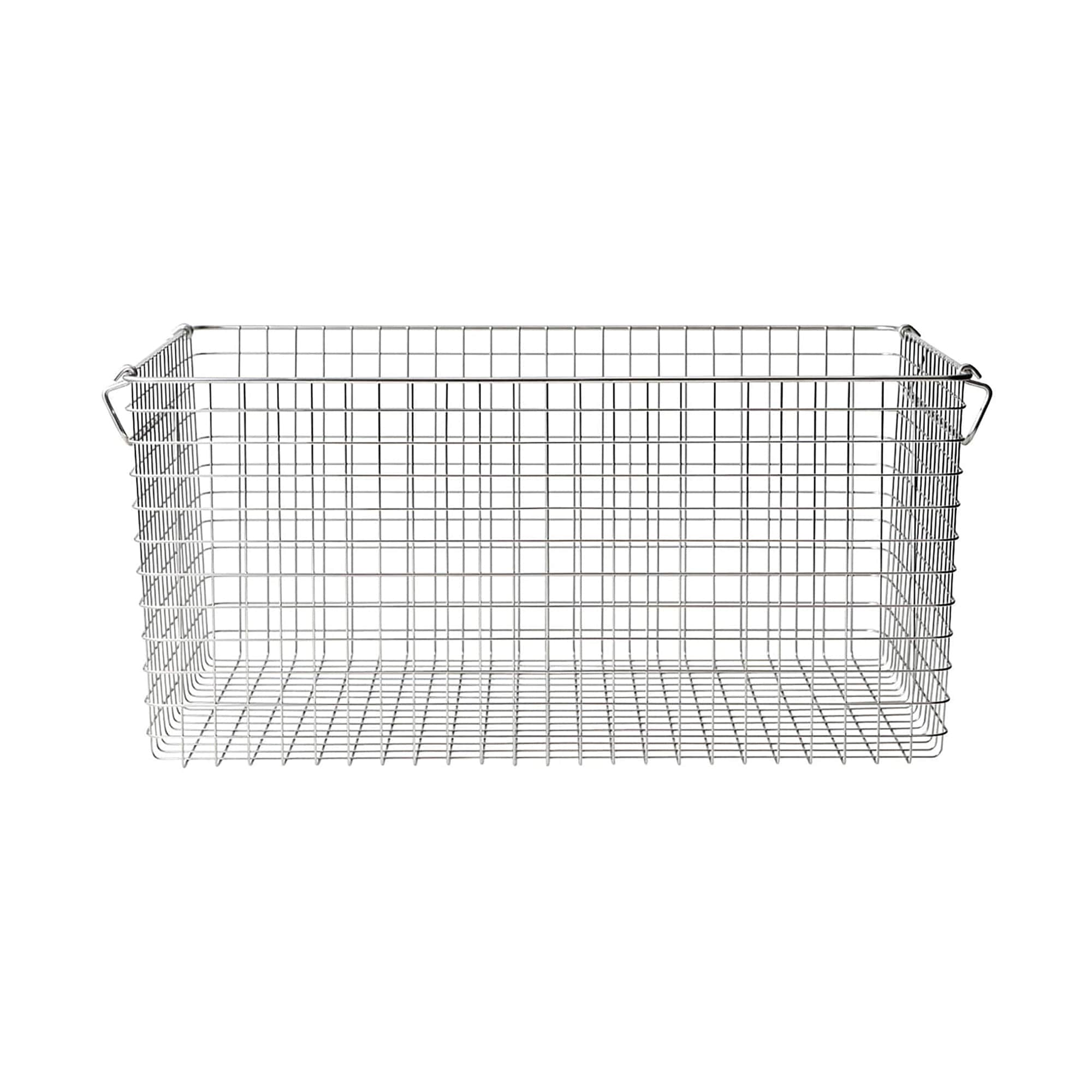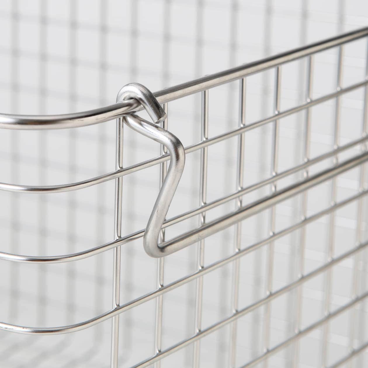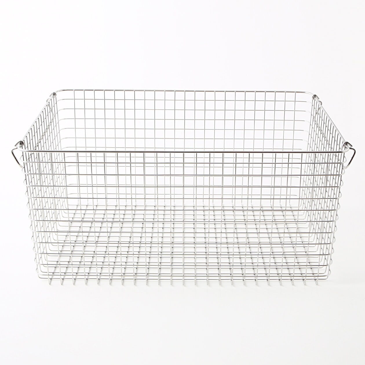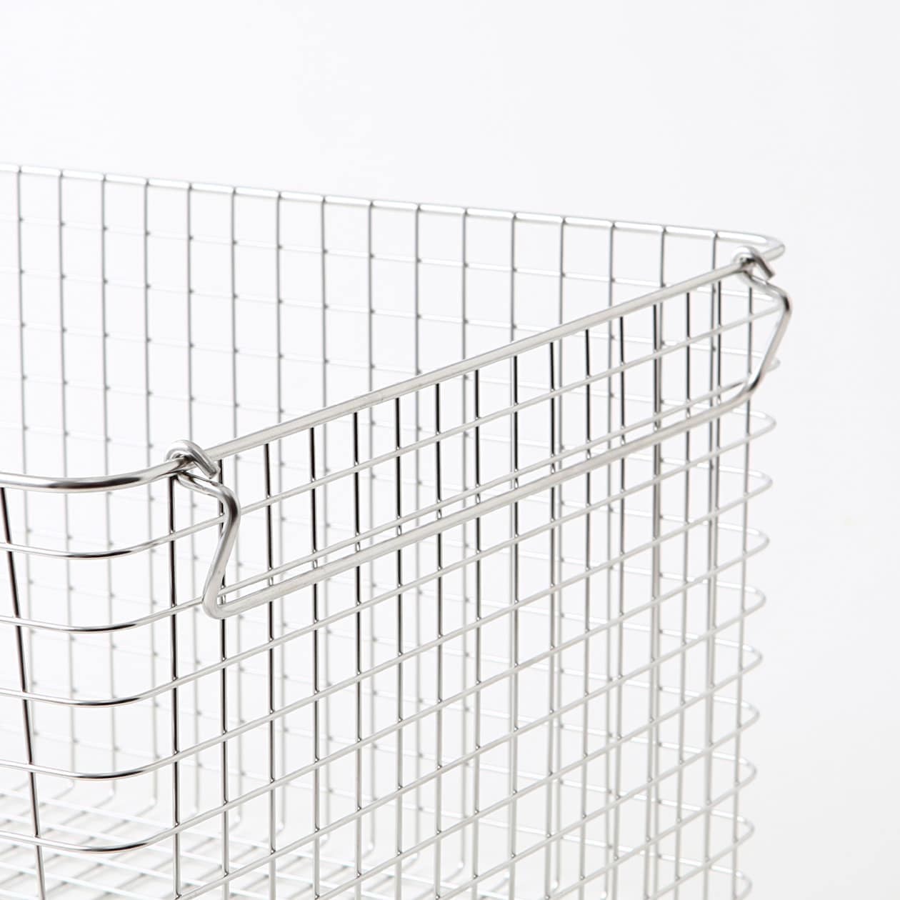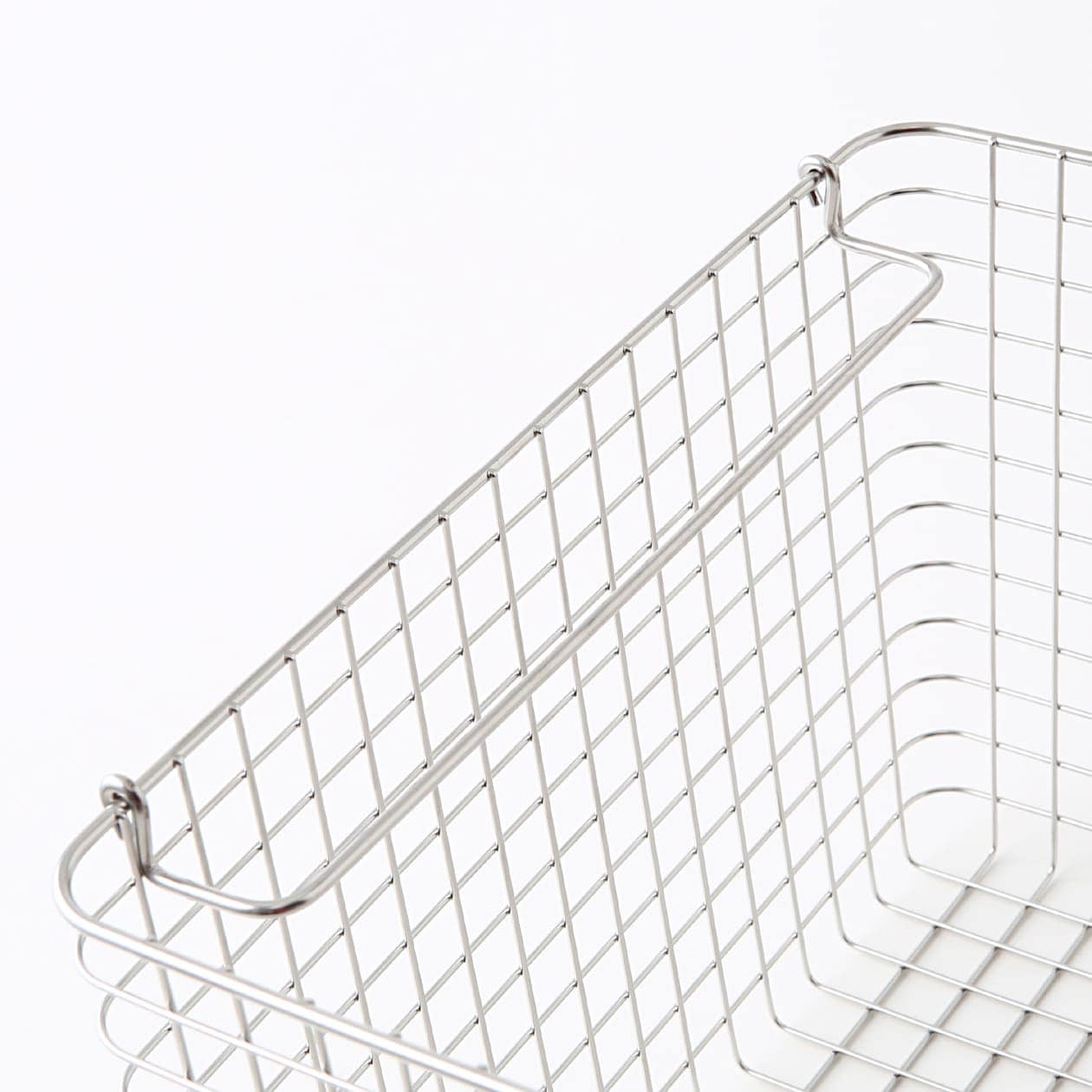 錆びにくいステンレスを使用したバスケットです。持ち手を内側におさめると積み重ねもできます。