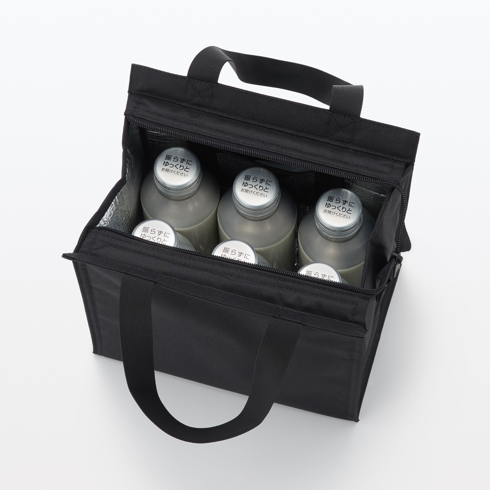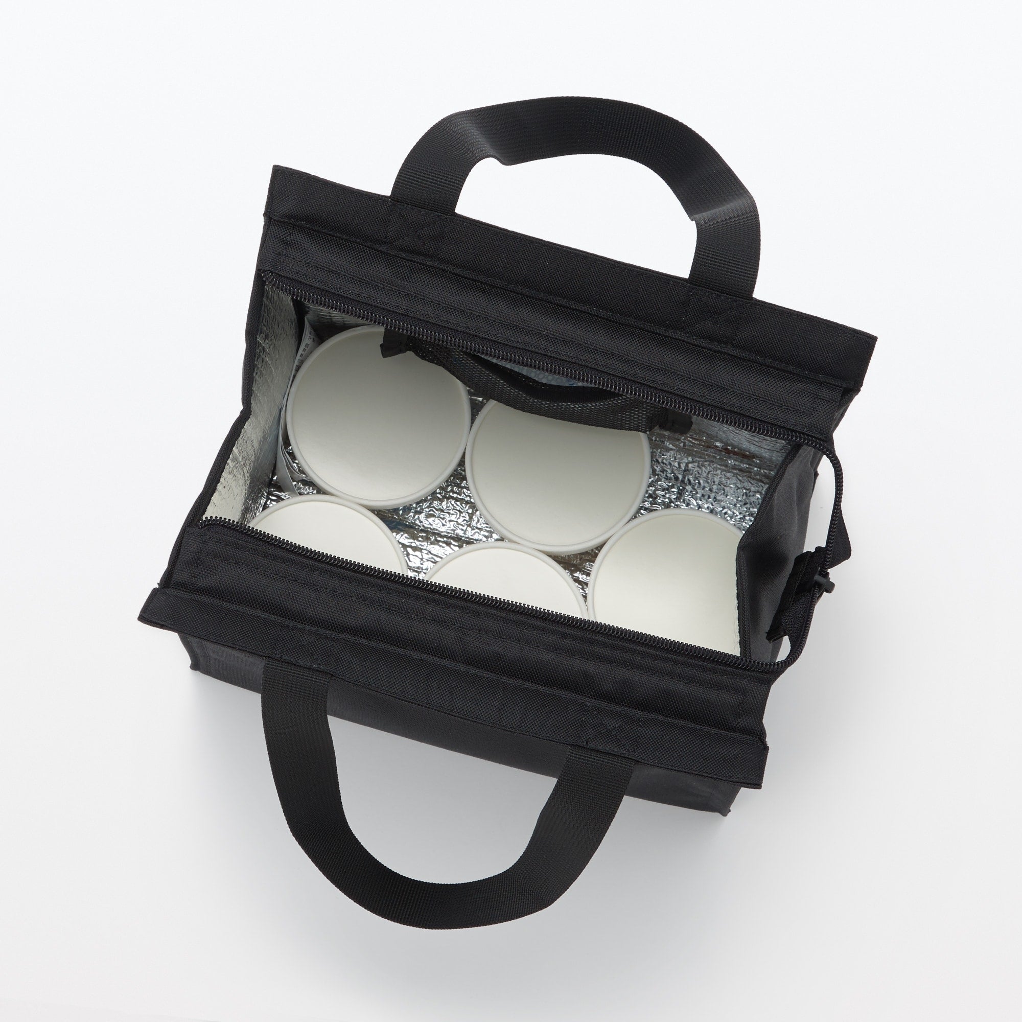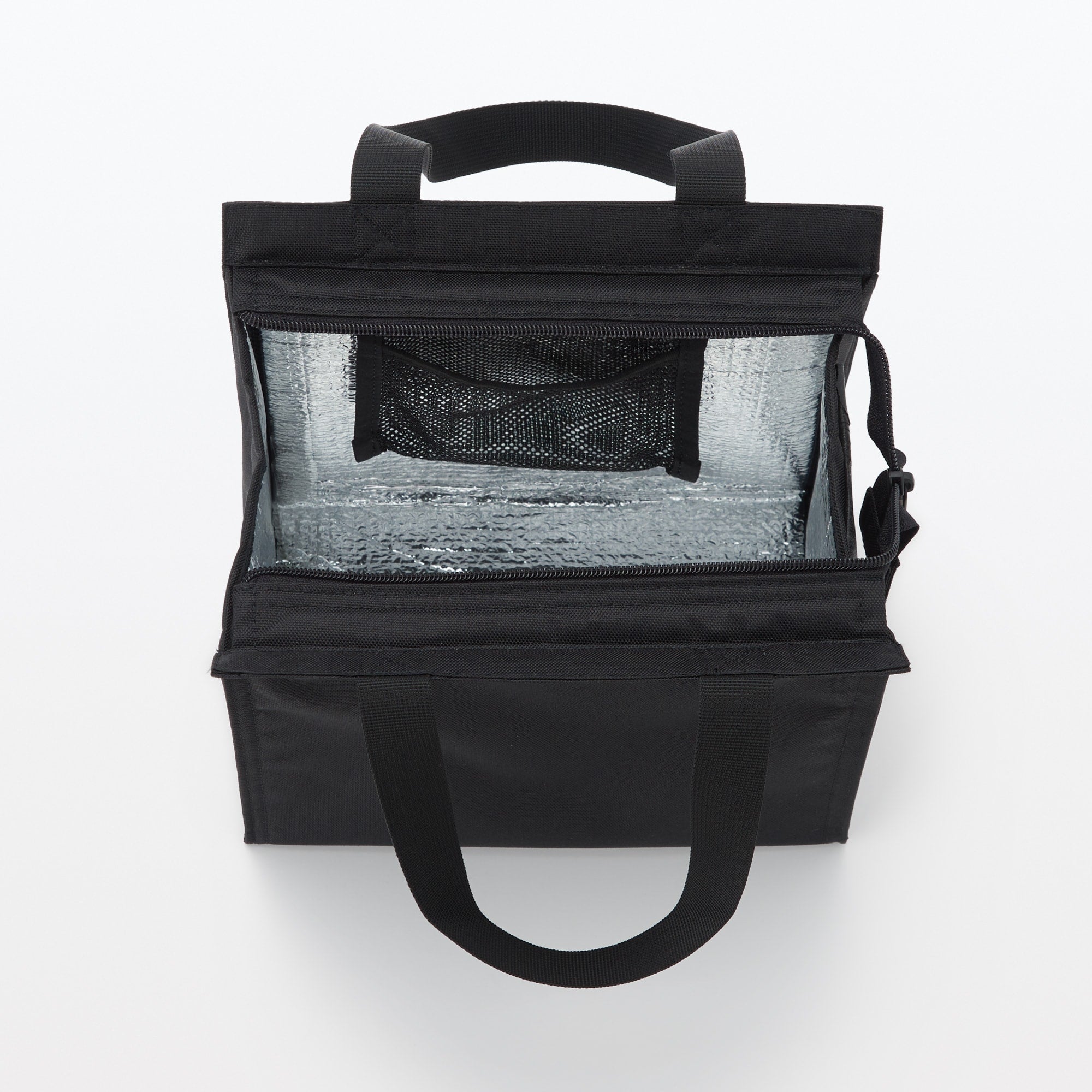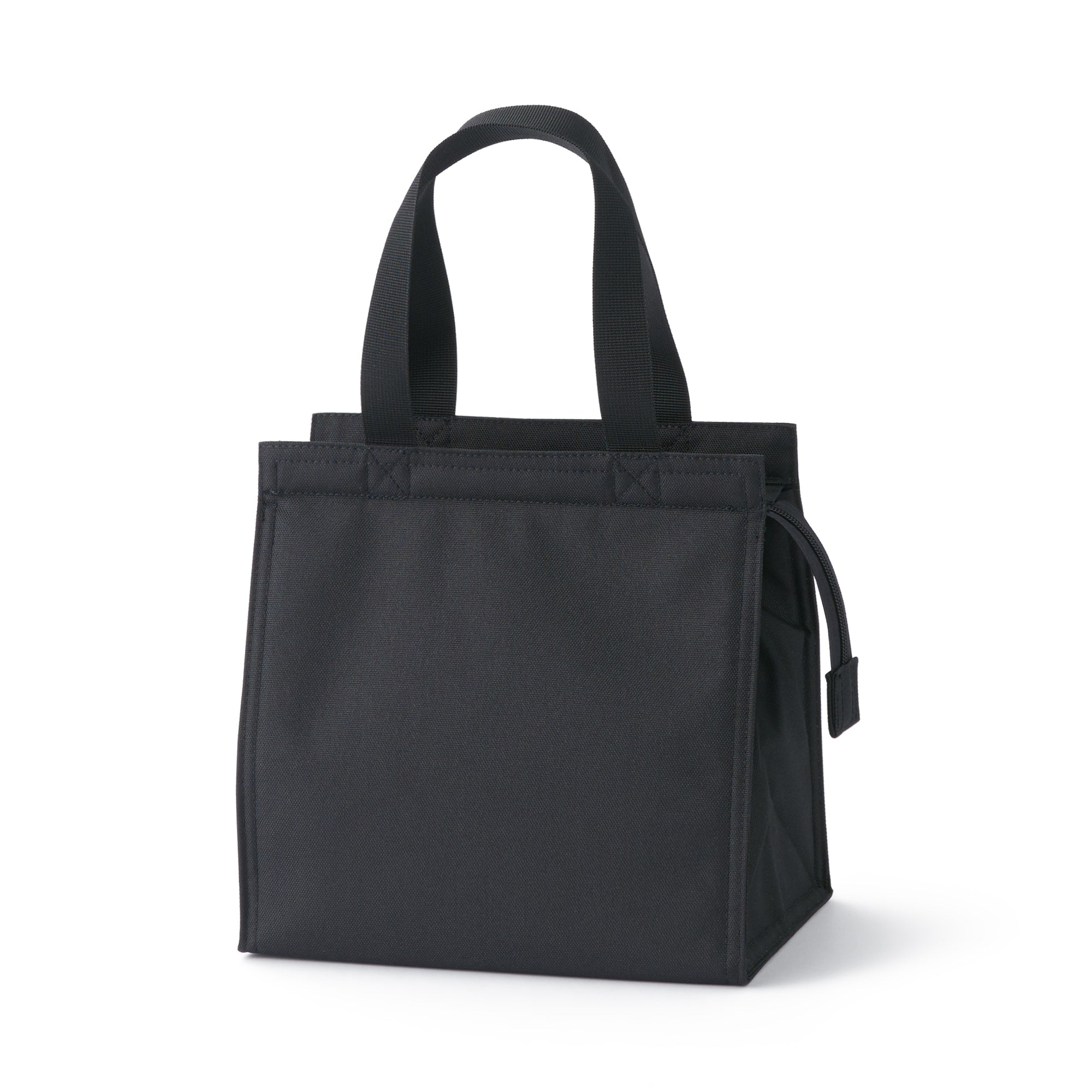 外気の影響を受けにくいよう内側にアルミシートを使い、上部にファスナーを付けました。食材が傾きにくいマチ広タイプです。内側に保冷剤を入れられるメッシュポケットがついています。(容量:約7L/ 耐荷重:約7kg)