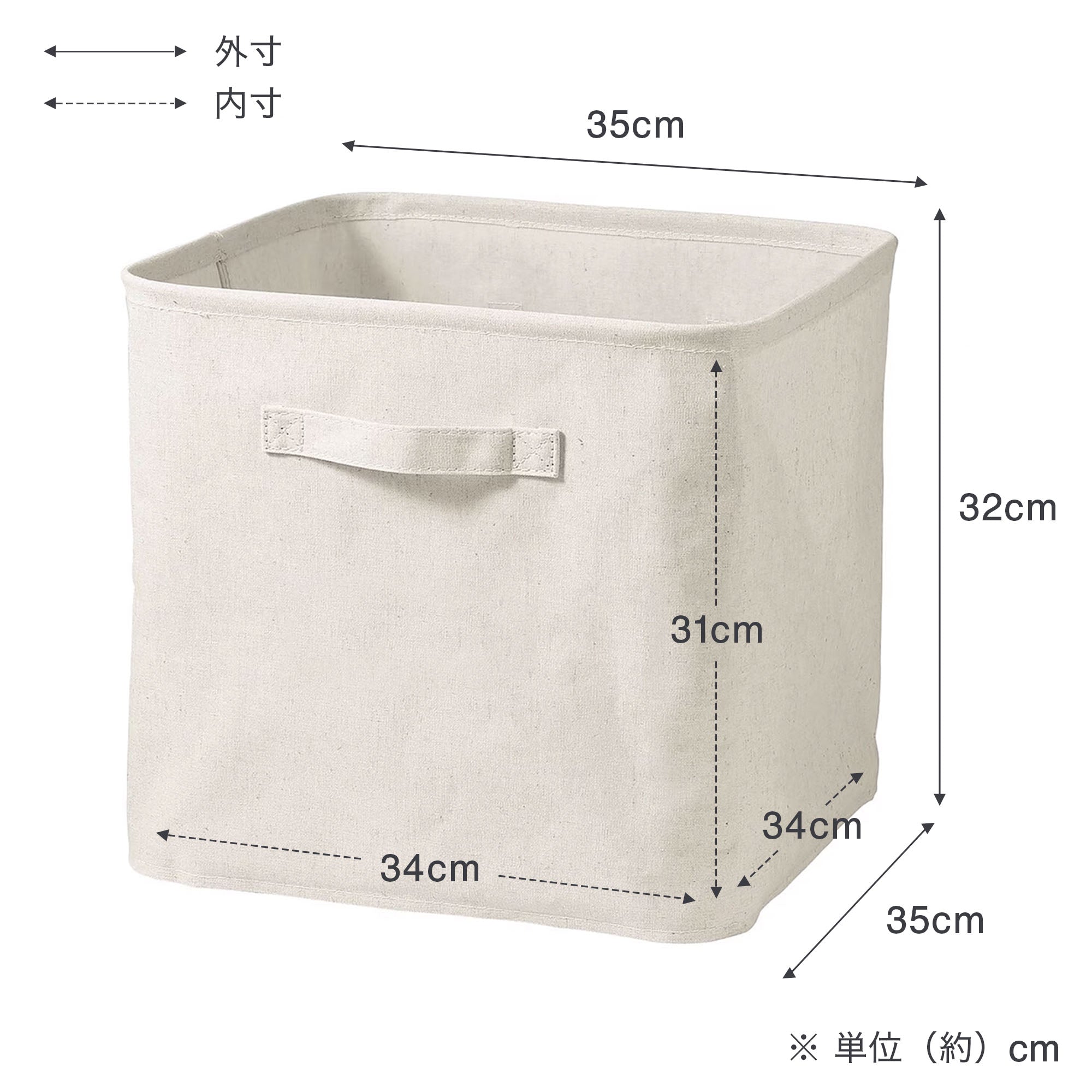 生地の内面をコーティングしたコンパクトにたためる布製ボックスです。整理しにくい小物やおもちゃなどをまとめて収納するのに便利です。耐荷重10kg、内寸約幅34.3×奥行34.3×高さ31cm