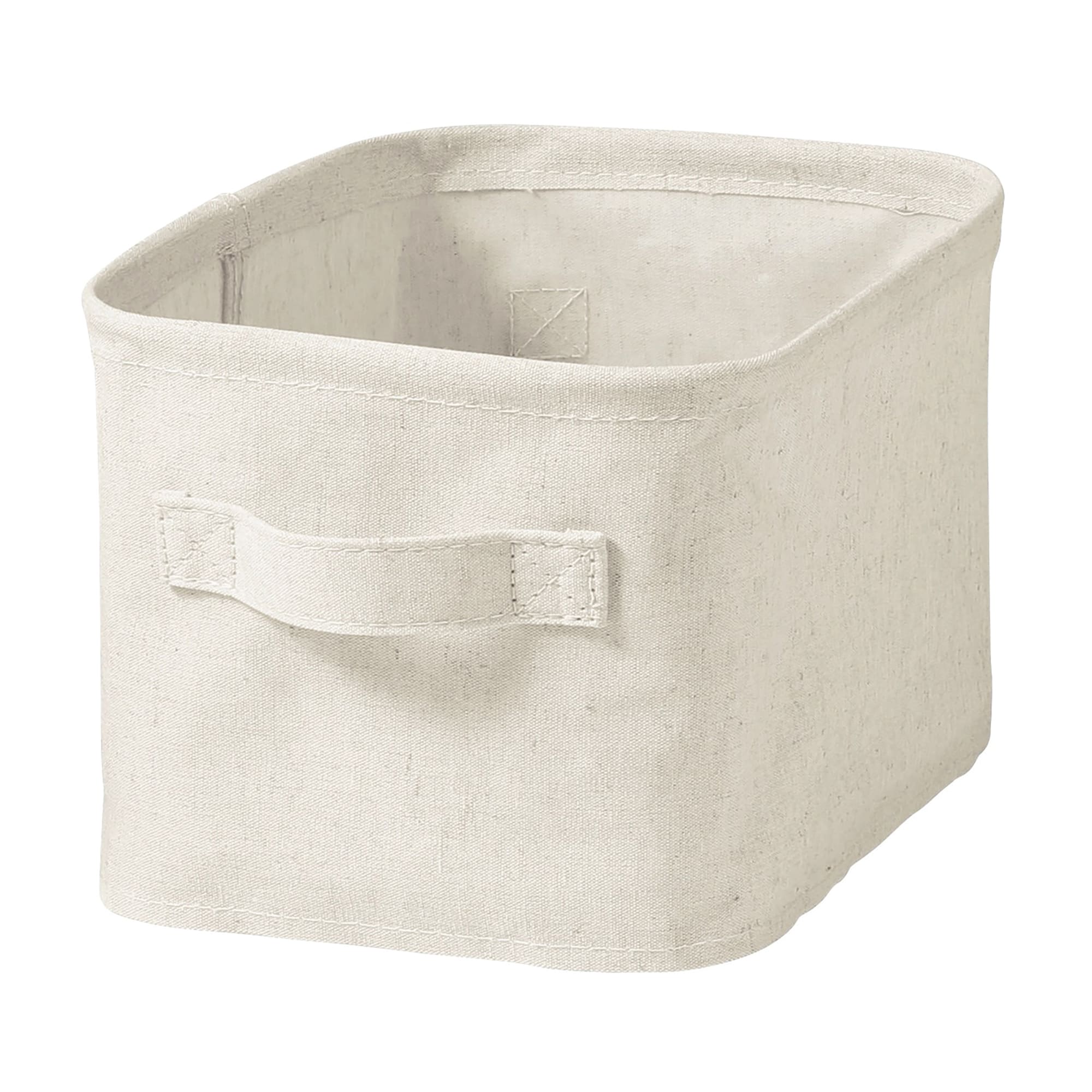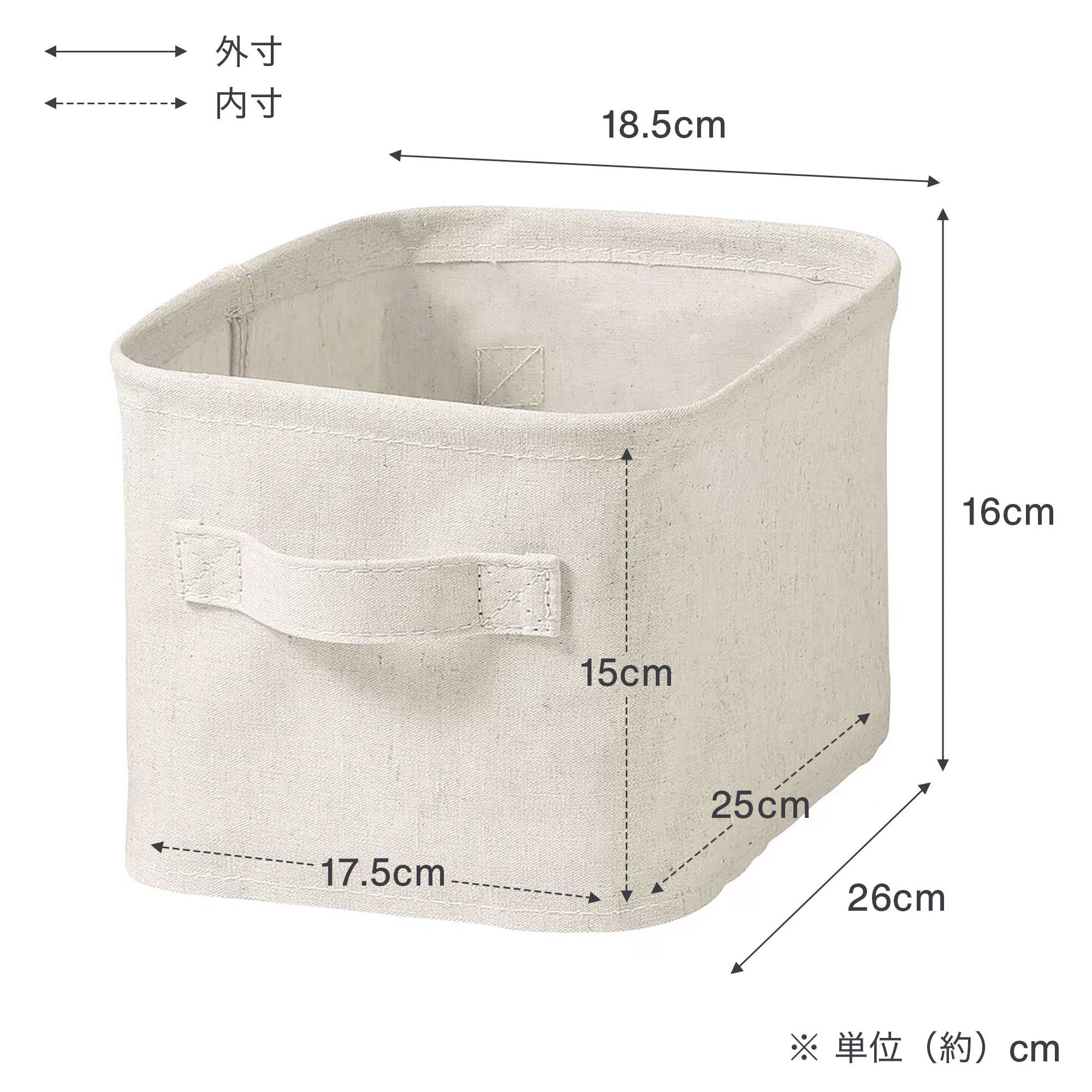 生地の内面をコーティングしたコンパクトにたためる布製ボックスです。整理しにくい小物やおもちゃなどをまとめて収納するのに便利です。耐荷重10kg、内寸約幅17.8×奥行25.3×高さ15cm