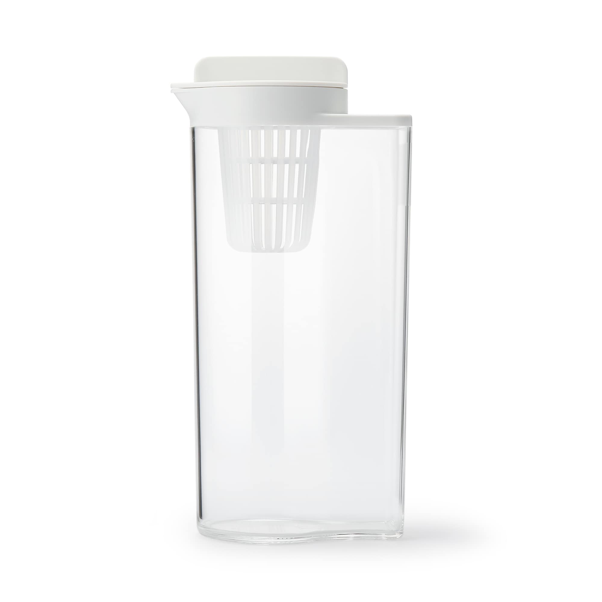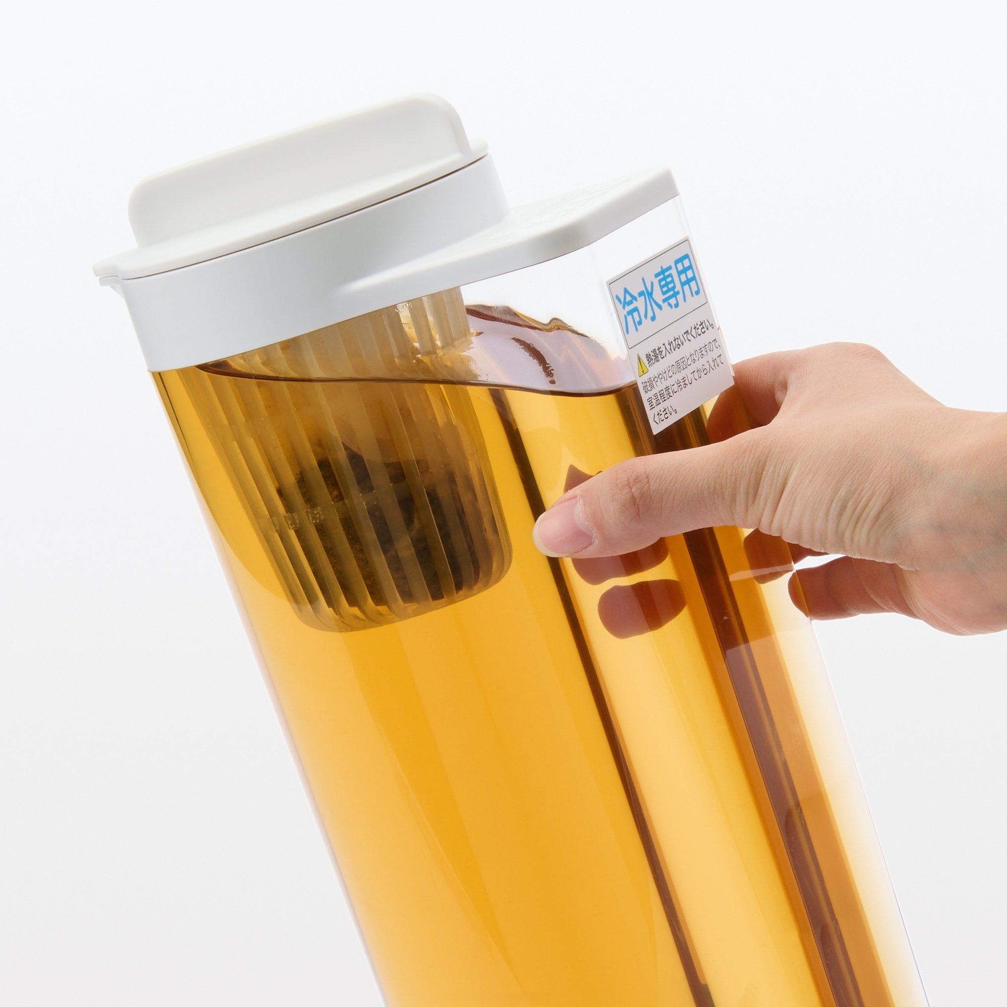 ねじ式で取外し簡単な水出しお茶パック入れ付です。たて置き・よこ置きができ、口が大きいので中が洗いやすい仕様です。