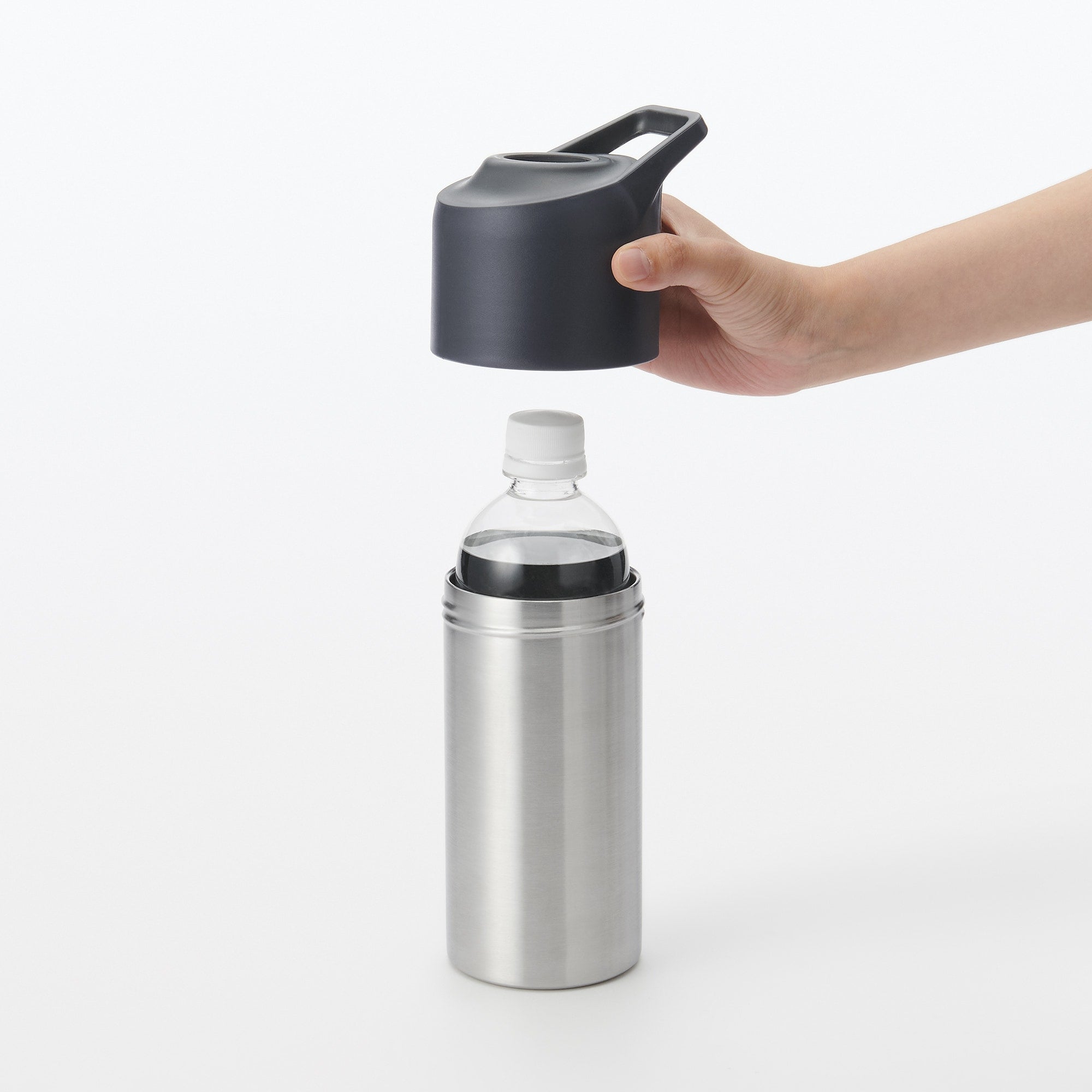 結露が起きにくい真空断熱構造。カバーを回転させ、ペットボトルにあわせた高さに調整できます。 【デザイン】 アウトドア、レジャー、キャンプ、オフィスなど場所を選ばずあらゆるシーンで冷やしたペットボトルを冷たいまま持ち運べます。取っ手がついており、持ち運びに便利です。 【適応サイズ】 500~650ml用 外形:70mm以内 高さ:210mm以内のペットボトル ※ペットボトルの形状によっては使用できない場合があります。 【形状】 ①カバーを回して外し、ペットボトルを入れます。 ②カバーを回して、しっかりと取り付けます。 ※カバーの締め過ぎにご注意ください。 【ご使用上の注意】 ●ペットボトル専用の保冷ボトルです。直接飲み物を入れて使用できません。 ●必ず立てた状態で置いてください。また、不安定な状態や場所で使用しないでください。 ●カバーを取り付ける際は、締めすぎにご注意ください。ペットボトルが破損するおそれがあります。 取扱説明書(PDF:1MB) 受取手段 店舗受け取り可・コンビニ受け取り可 支払手段 d払い可・つど後払い可・atone翌月払い可