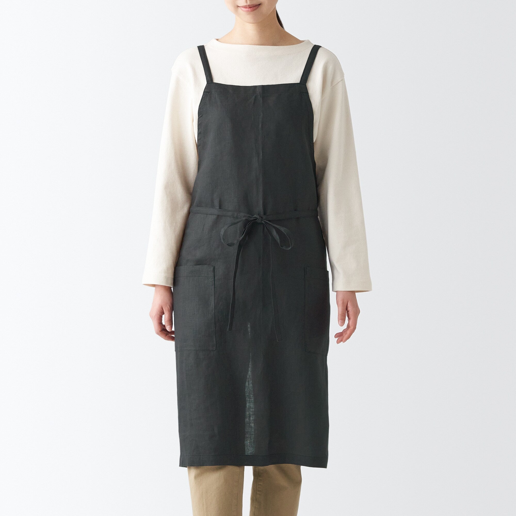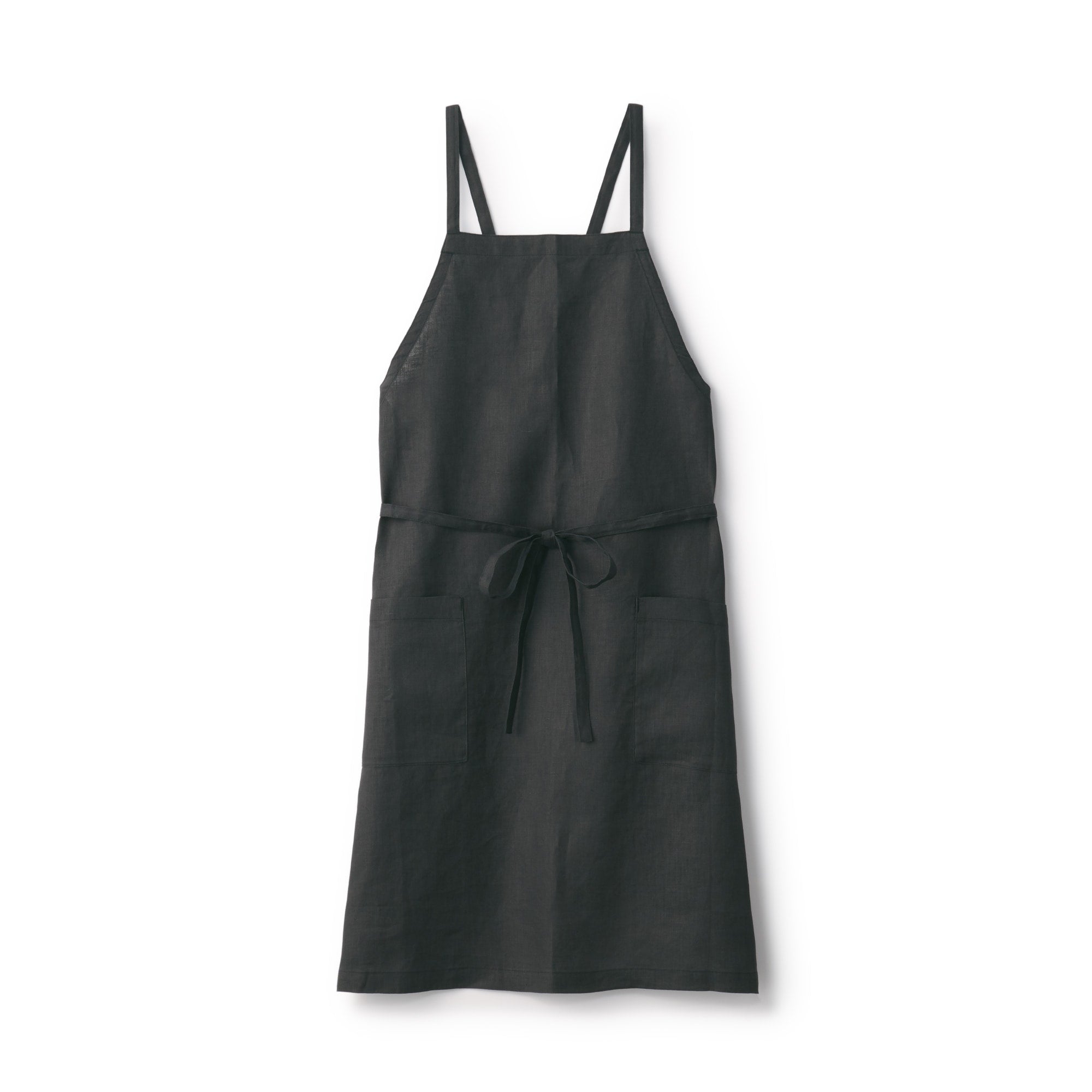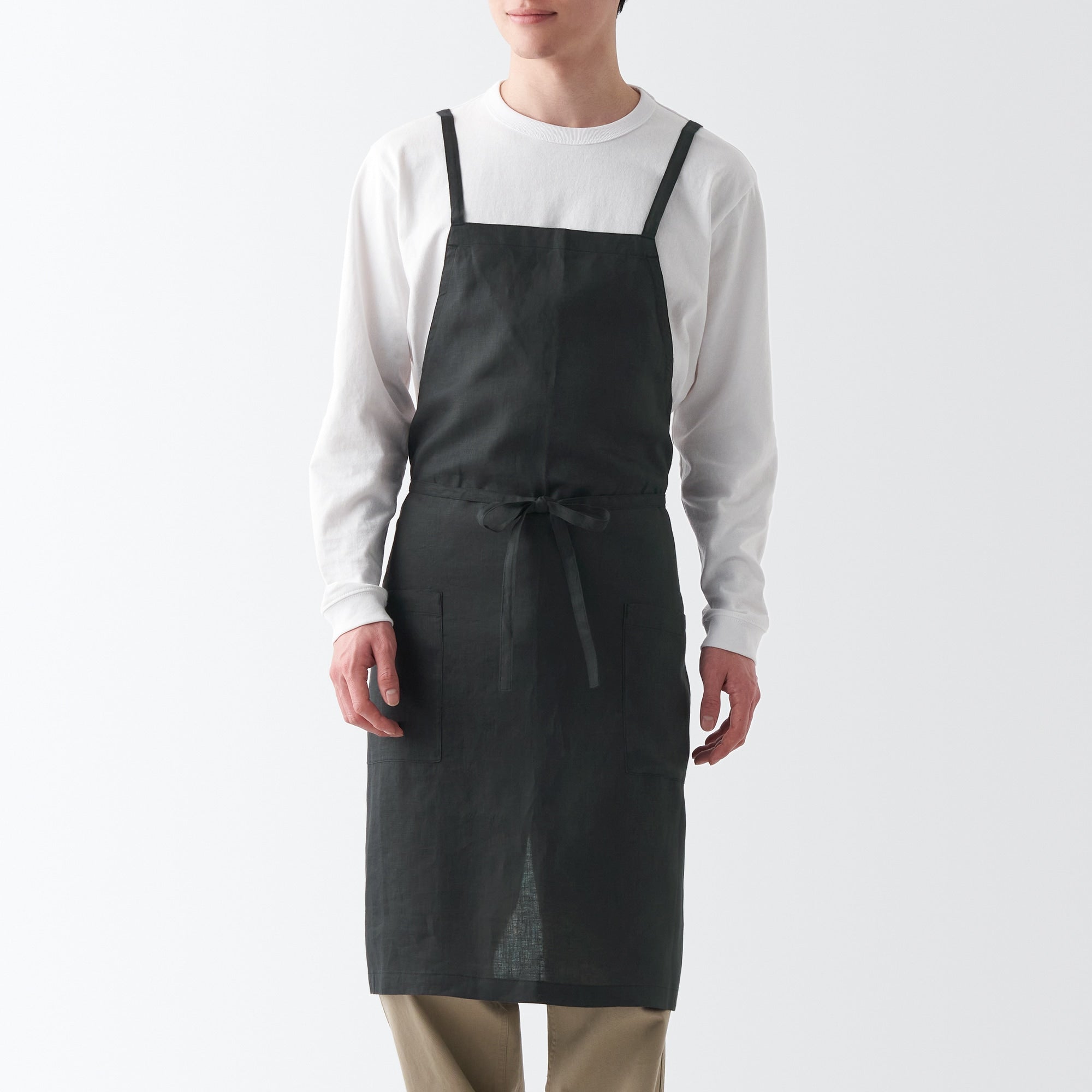カフェなどで一般的に使用されている、首が疲れにくいたすき掛けタイプのエプロンです。紐を結ぶ位置で、着丈や身幅が調整できます。男女兼用のフリーサイズです。
