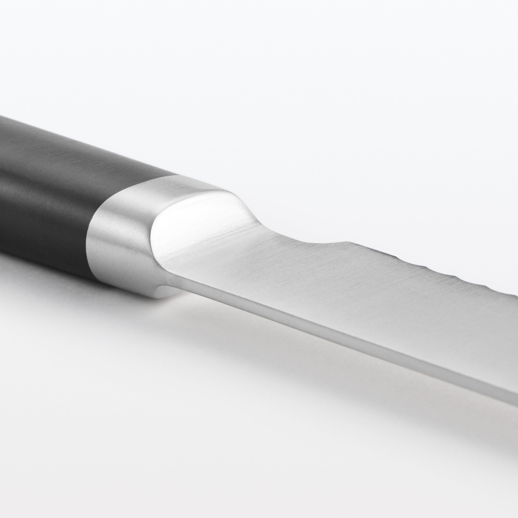 大きな食パンも切りやすい長めの刃渡り。丸みのある波刃加工で、やわらかいパンもまっすぐスムーズにカットできます。