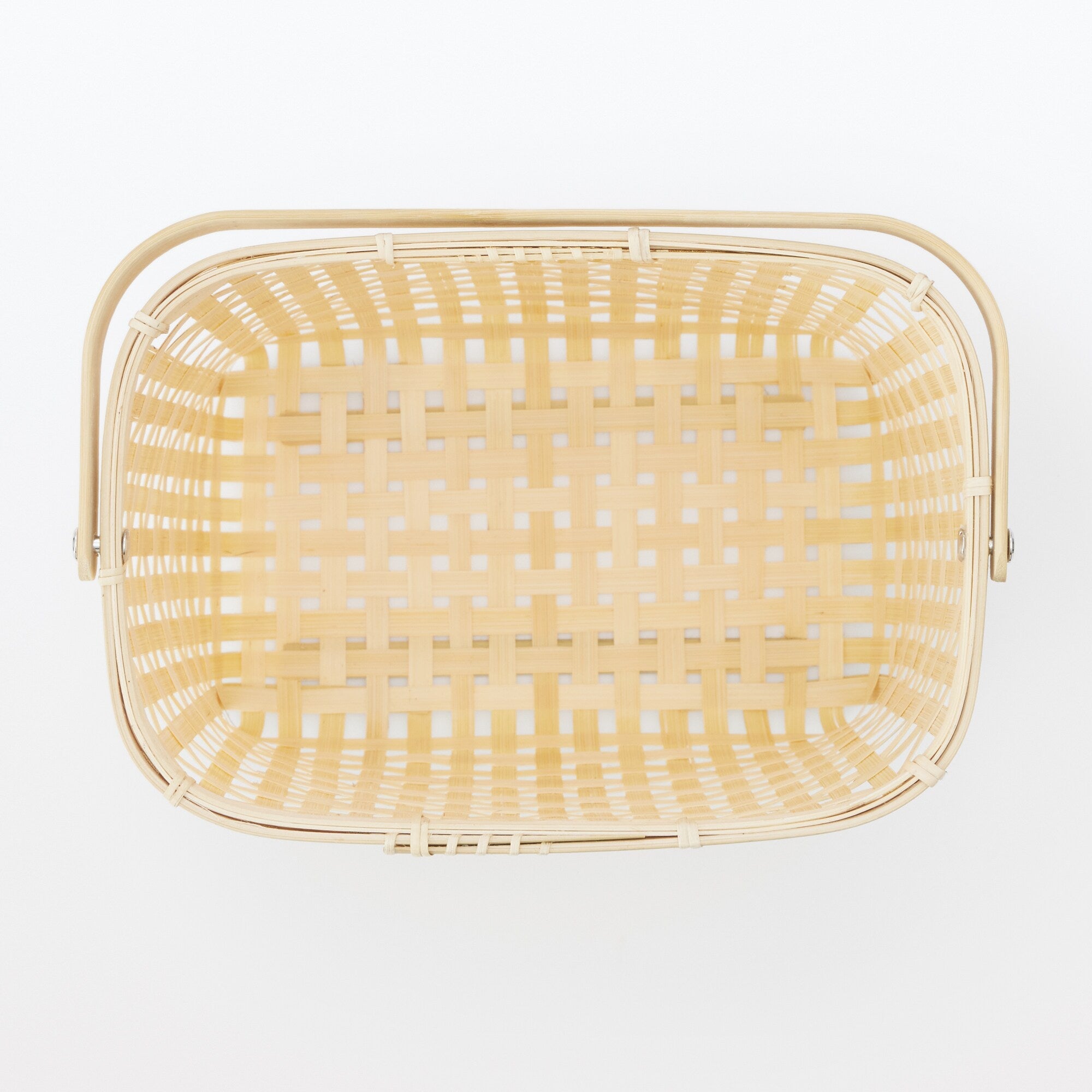 竹材 四つ目編み 持ち手付きかご ハーフ 大