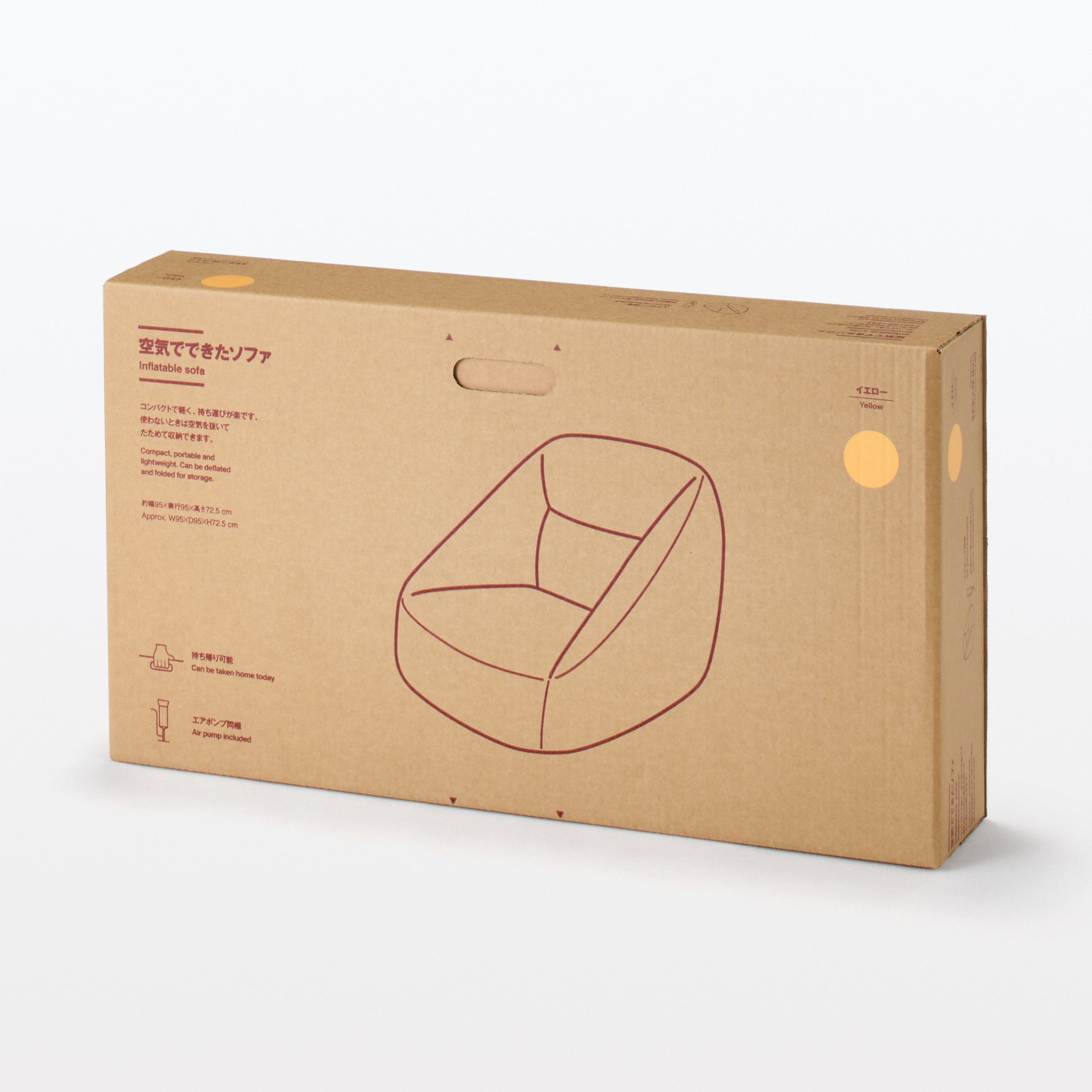 商品サイズ:幅95cm×奥行95cm高さ72.5cm 空気を使うことで省資源、省スペース、軽量コンパクトのソファを作りました。付属のポンプで空気を入れて使うコンパクトな一人掛けのソファです。空気の充填量で座り心地が変わり、お好みの座り心地に調整できます。また、空気を使用しているので軽く、移動や掃除も楽に行えます。 2024年1月発売当時にご好評いただいていたイエローを再販いたします。 商品の構造を見直しました。座り心地を改善し、より安心してお使いいただけます。 【おすすめポイント】 ・どこにでもある空気を活用した、省資源で軽量なソファです。 ・エアタンクはカバーに装着されているので、空気を入れるだけで一人がけのソファが簡単にできあがります。 ・エアタンクは水道管や配管などにも使われる丈夫な塩化ビニルを使用し、空気漏れや破裂する可能性を抑えています。 ・ソファとして一番大事な要素の座り心地も追求し、座面部にクッション材を入れる工夫をしています。また、空気の量で座り心地を変えられるのも特長で、空気を満タンにするとホールド感、少し抜くとリラックス感が楽しめます。 ・軽いので、掃除の際に邪魔になりにくく、移動させていろいろな部屋で使うことも可能です。背面の裏側には持ち運びしやすいよう、取っ手を付けました。 【お手入れ・取り扱いについて】 ・エアタンクを取り出してカバーの洗濯が可能です。 空気を入れたあと、お使いになる前に二重のフタがいずれもきちんと閉まっていることを確認してください。 フタの閉め方の確認方法はこちらです。 【サイズ】 使用時:約幅95cm×奥行95cm×高さ72.5cm たたんだ状態:約幅75cm×奥行40cm×厚み10cm 梱包サイズ:約幅80cm×奥行46cm×高さ15cm 組立説明書(PDF:3.4MB) 組立説明書(PDF:1.9MB) 受取手段 店舗受け取り可・コンビニ受け取り不可一部店舗受け取り可能受け取り可能店舗を見る 支払手段 つど後払い可・atone翌月払い可