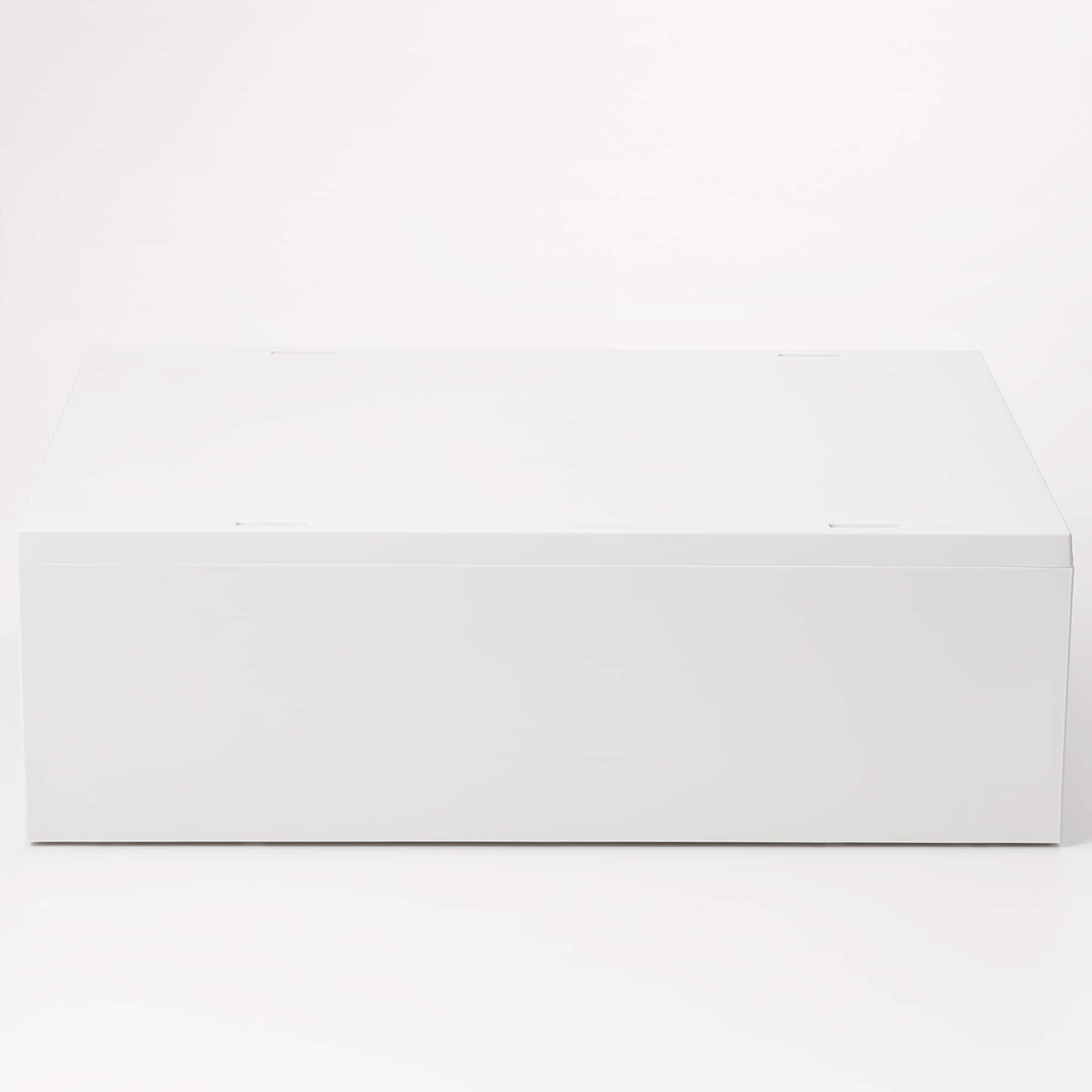 半透明のPPではなく顔料を入れてホワイトグレー色にしました。仕切り板6枚(引出し1段あたり7段階、約3cmきざみで移動可能)