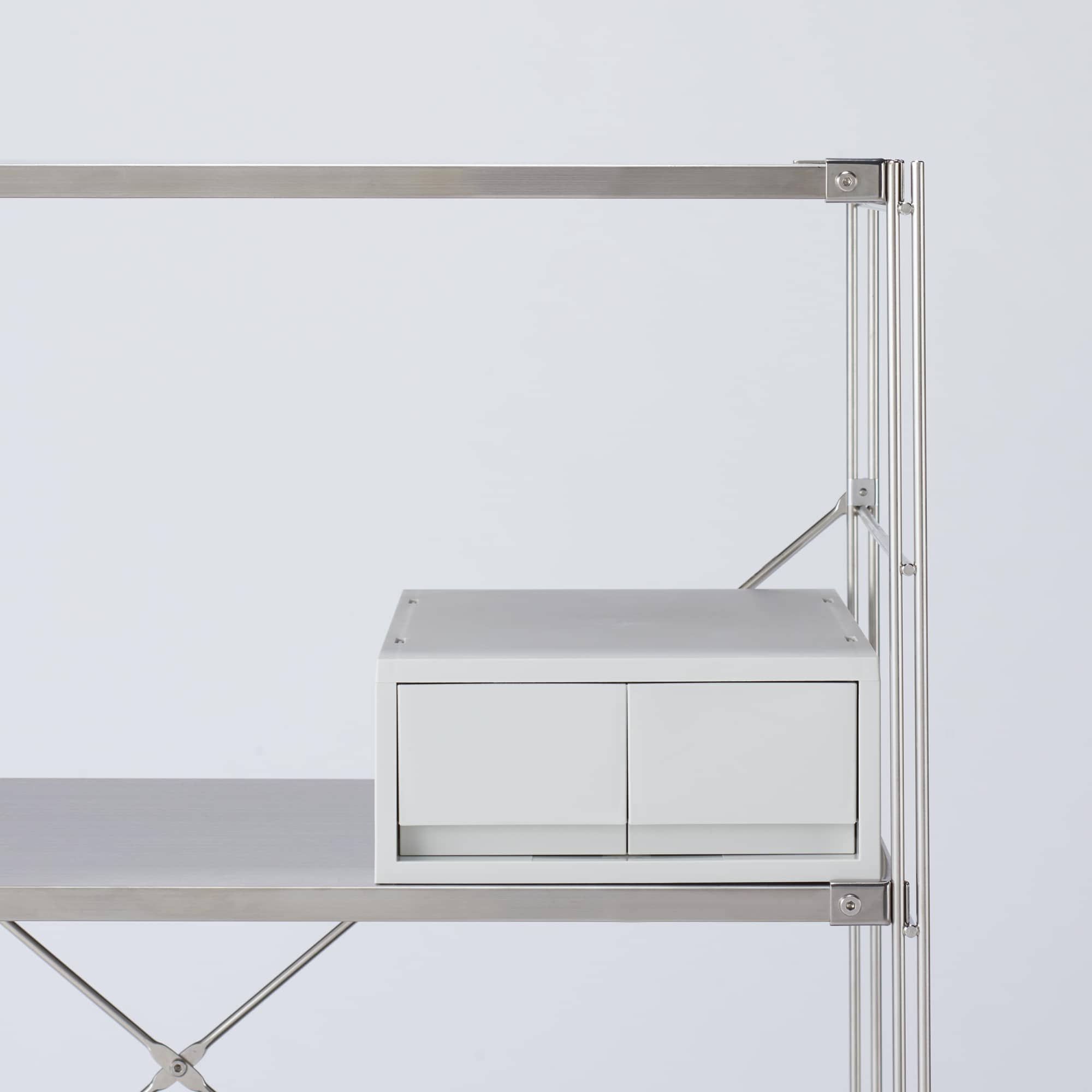 旧商品名は「ポリプロピレンケース・引出式・浅型・2個(仕切付)・ホワイトグレー(商品番号:02108304)」です。