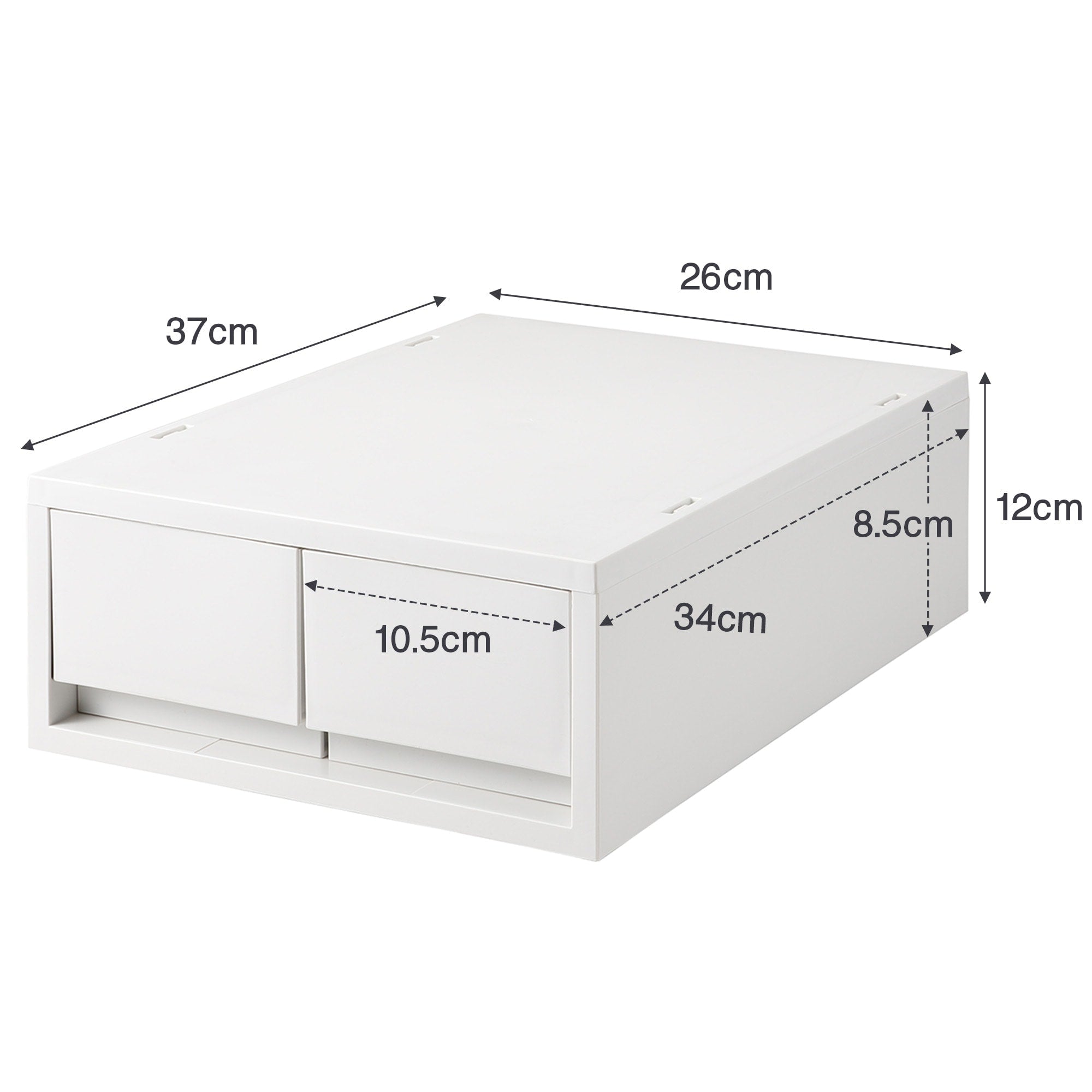 ポリプロピレン 小物収納ケース 中 引出2個 ホワイトグレー
