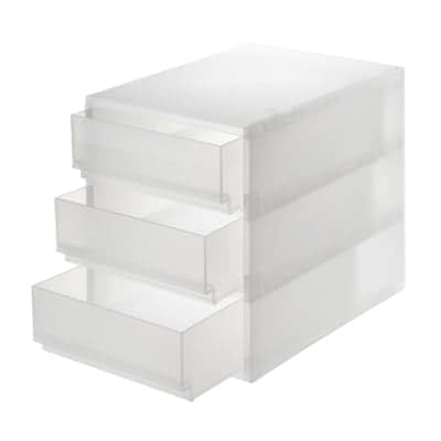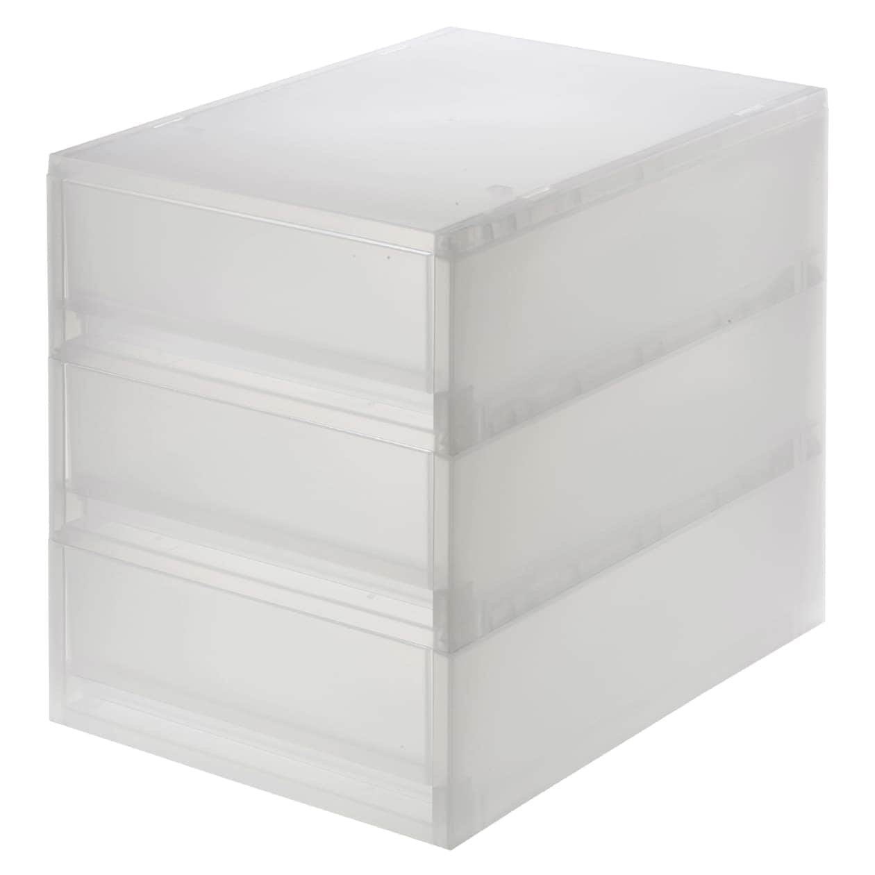 「ポリプロピレンケース・引出式・浅型・3段」⇒「ポリプロピレン小物収納ケース 引出3段」
