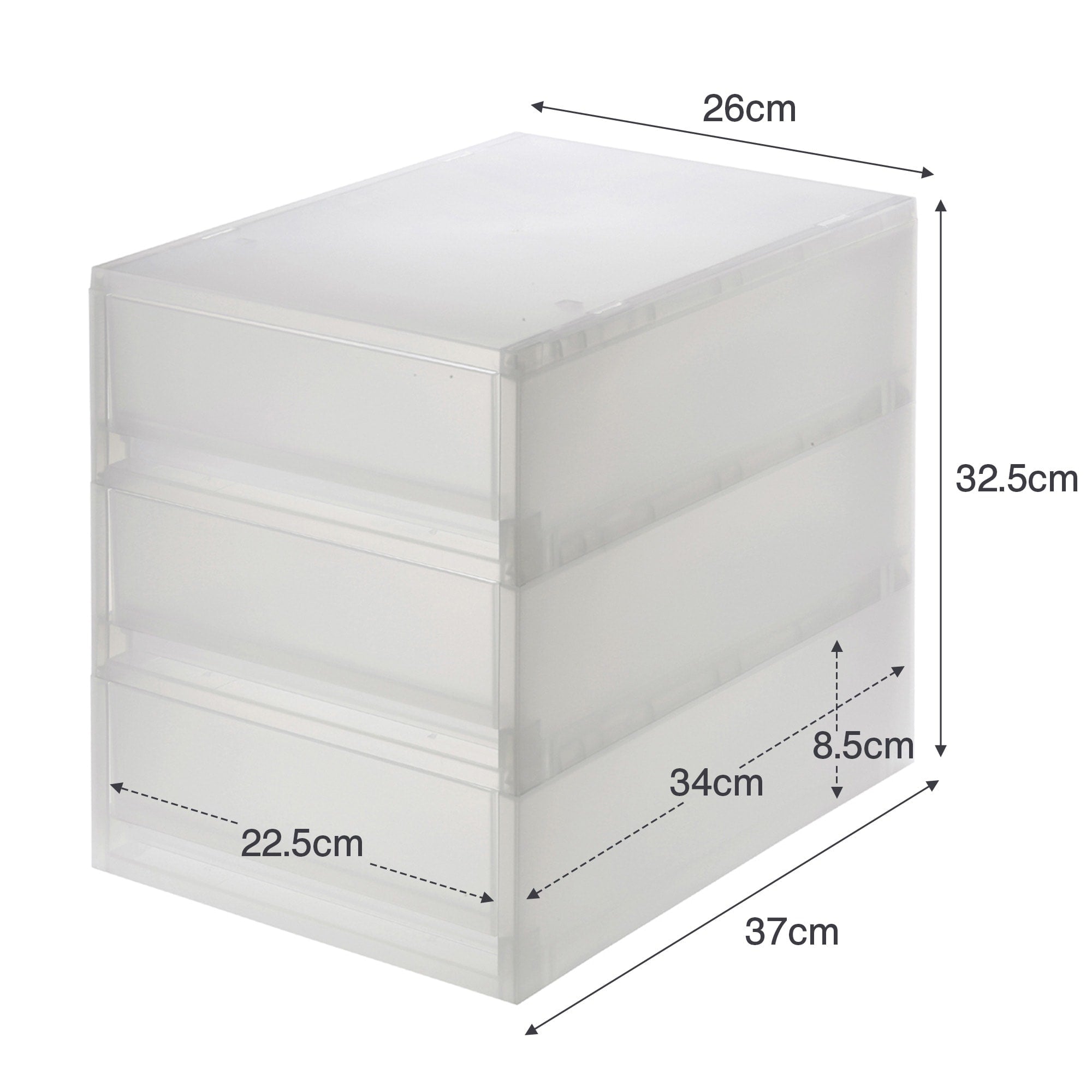 旧商品名、店舗で販売している商品は「ポリプロピレンケース・引出式・浅型・3段(商品番号:76748991」になっている場合がございます。