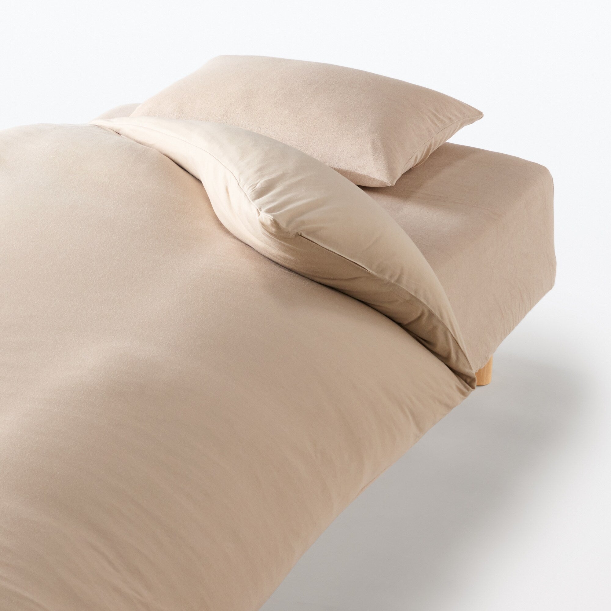 リヨセルを一部使うことで、なめらかな肌触りです。掛ふとんカバーは天竺編みでやわらかな肌当たり、まくらカバーとボックスシーツはパイル織にすることでさらりとした使い心地で、年間通して使いやすい仕様にしました。