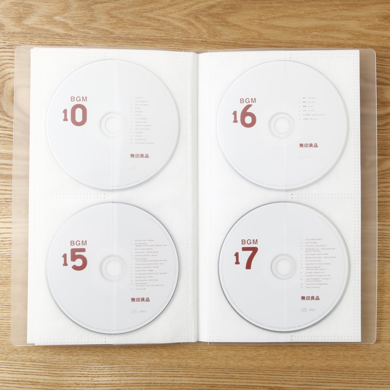 顔料を使わず無色に仕上げました。CD面に傷がつきにくい不織布付CDホルダーです。