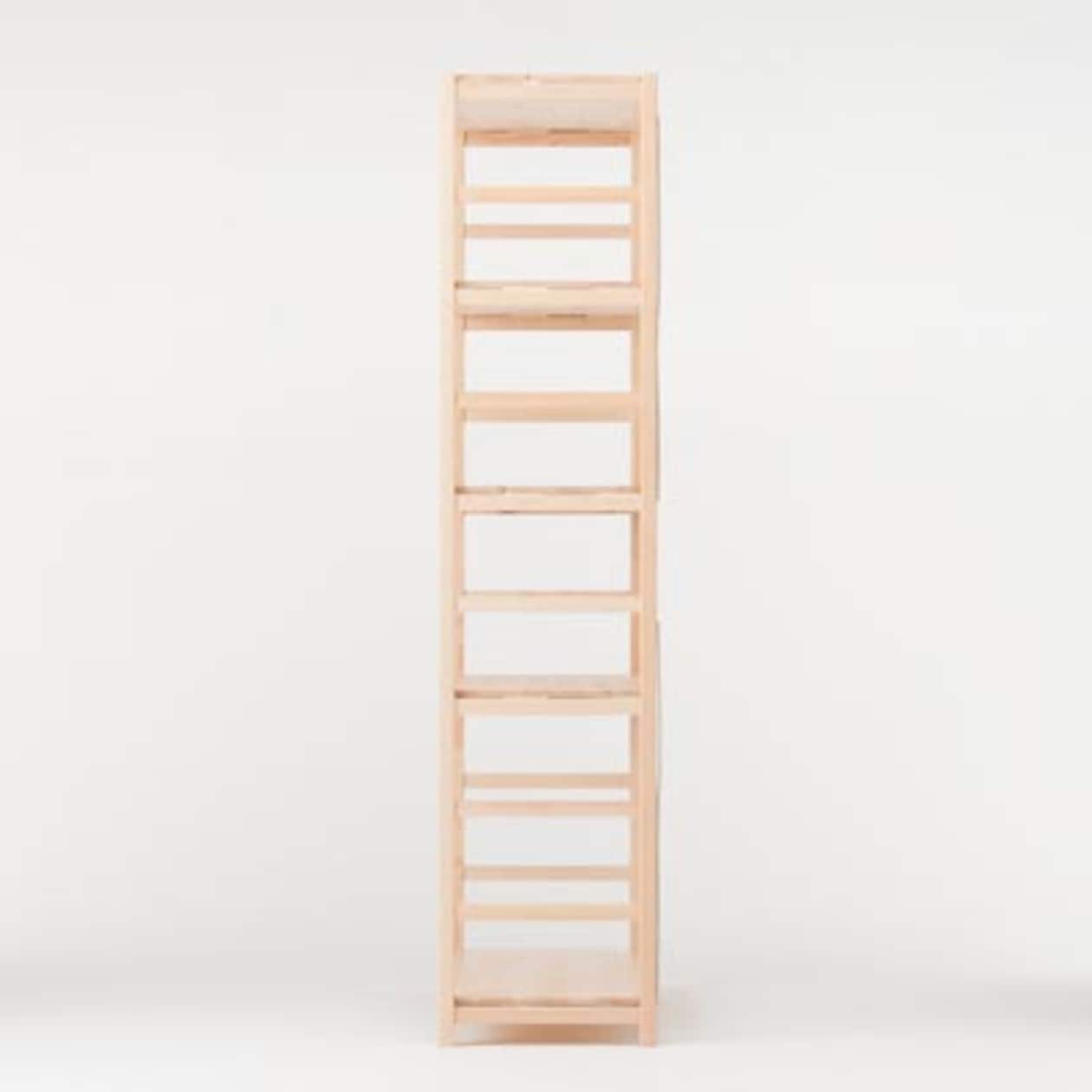 パイン材を生かしたナチュラルなユニットシェルフです。モジュールを合わせることで収納用品がぴったり収まります。