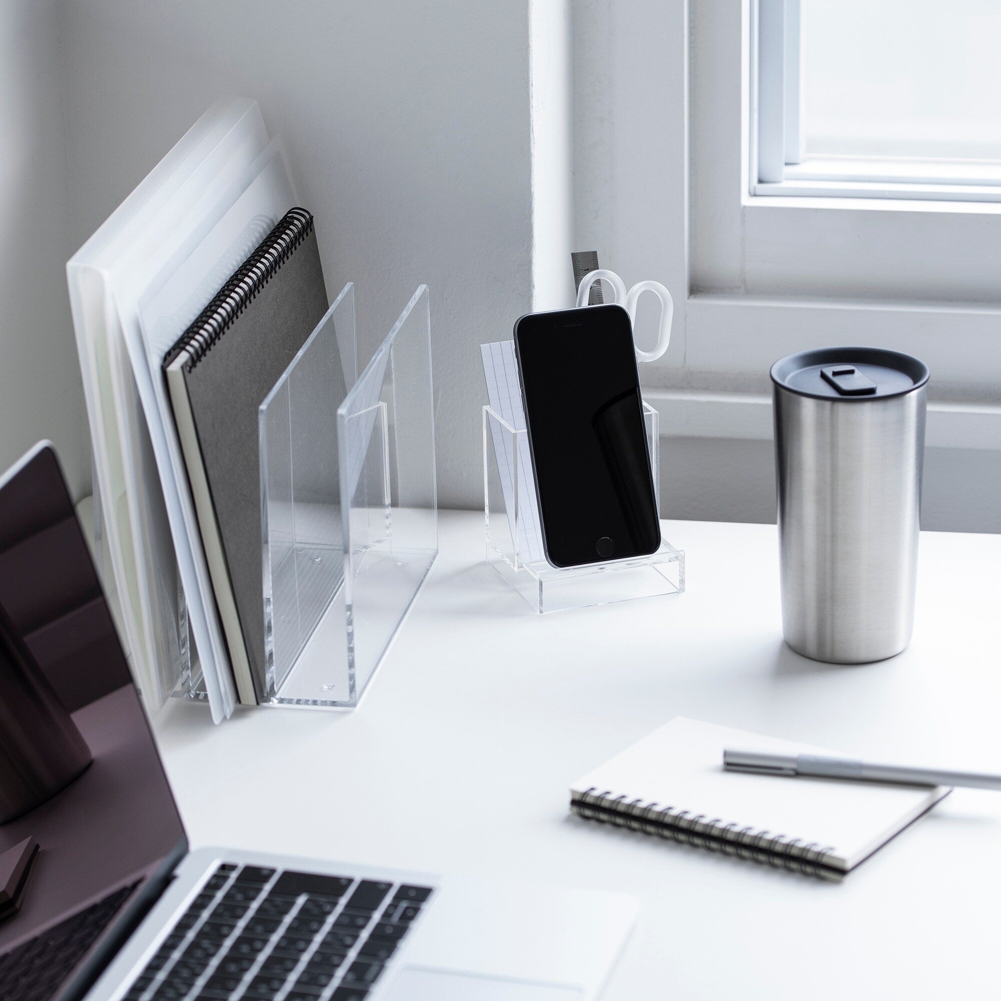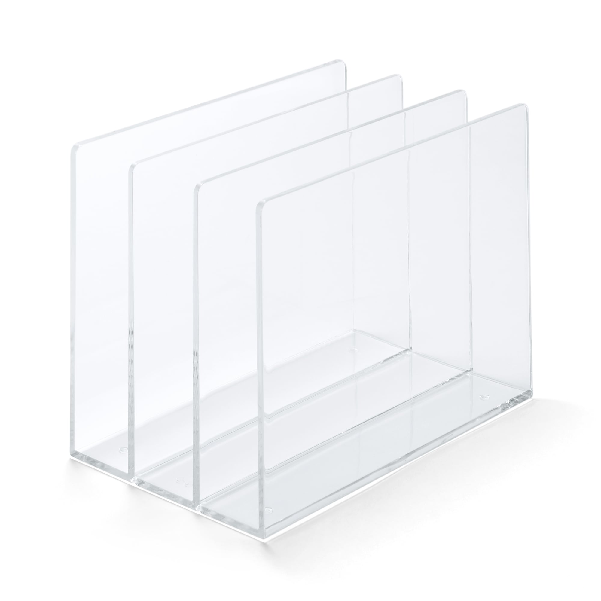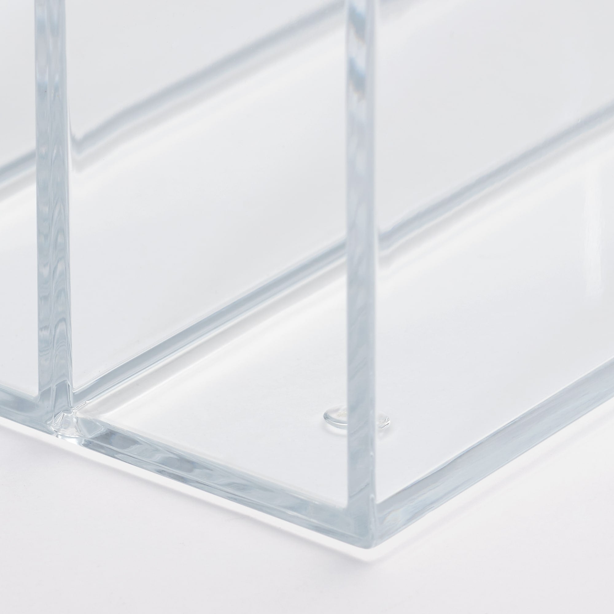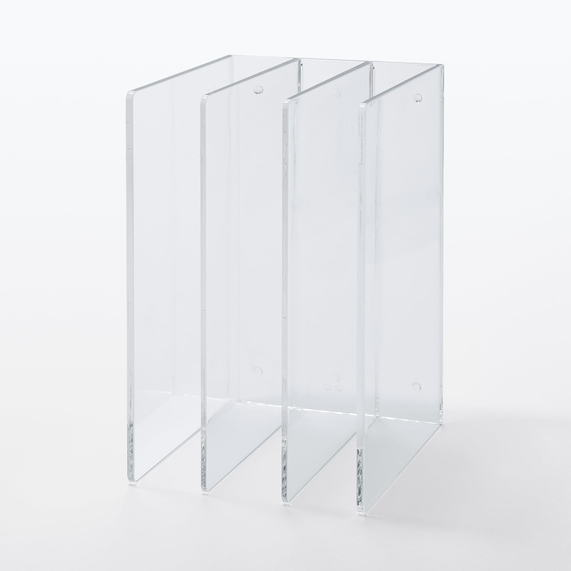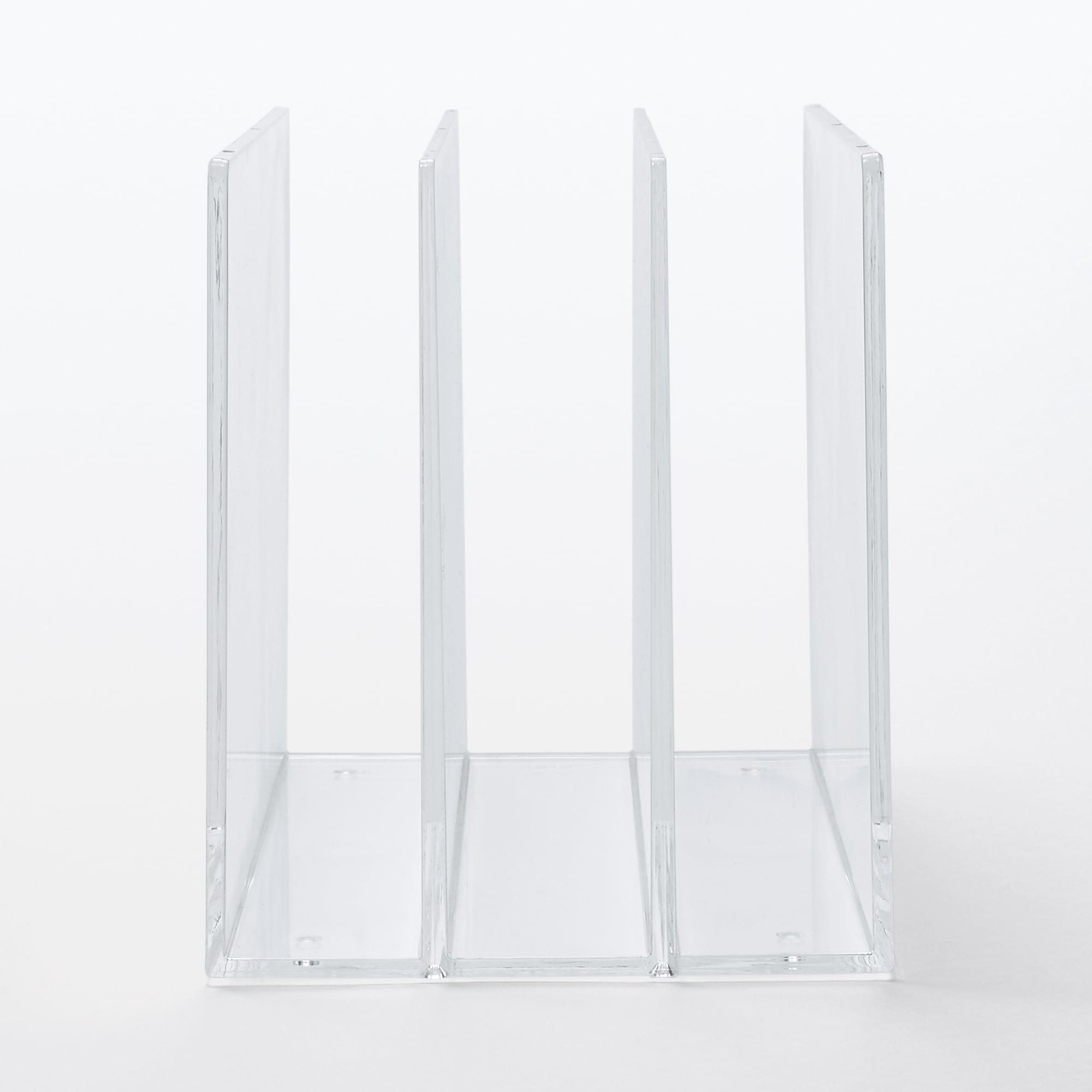 透明なのでインテリアに馴染みやすく、中が見えるので使い方が広がります。本や雑誌、書類などを整理・分類するのにも便利です。(仕切間隔:約37mm)
