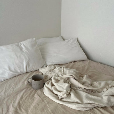 綿本来の風合いを生かすために洗いざらしで仕上げました。季節を問わず、一年を通じて使用できます。綿はオーガニックコットン100%です。