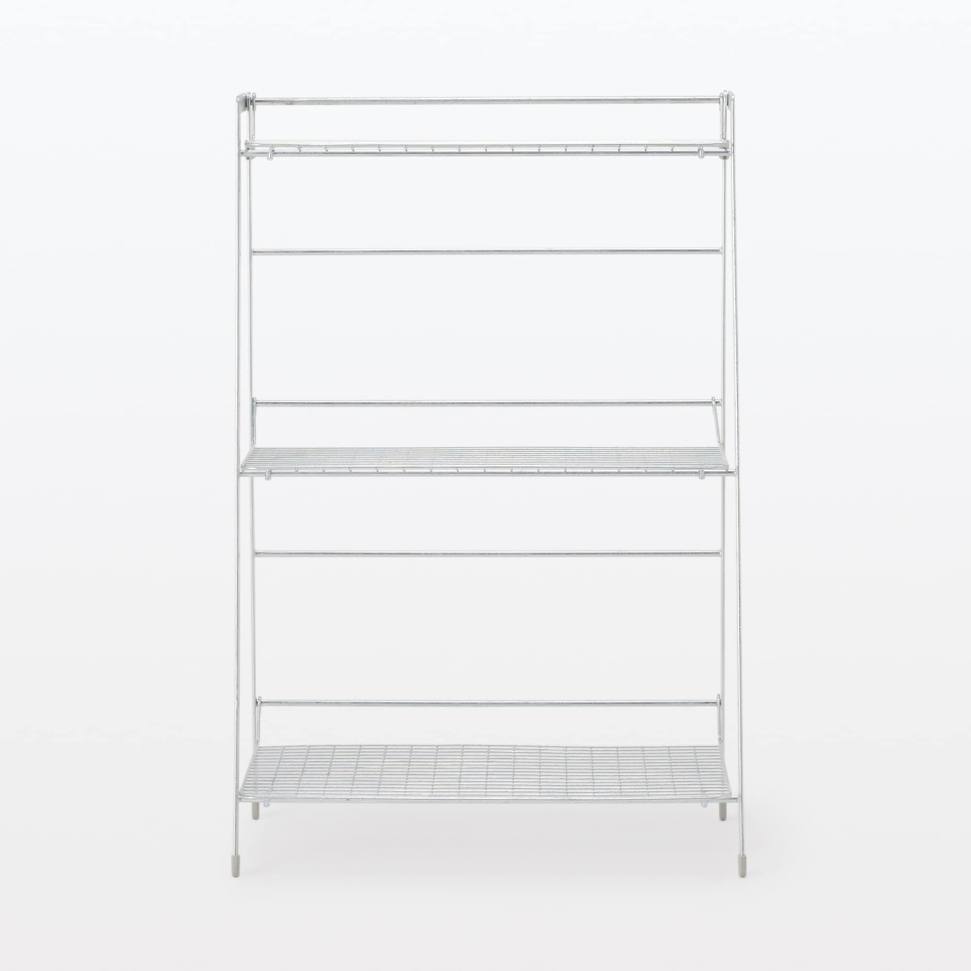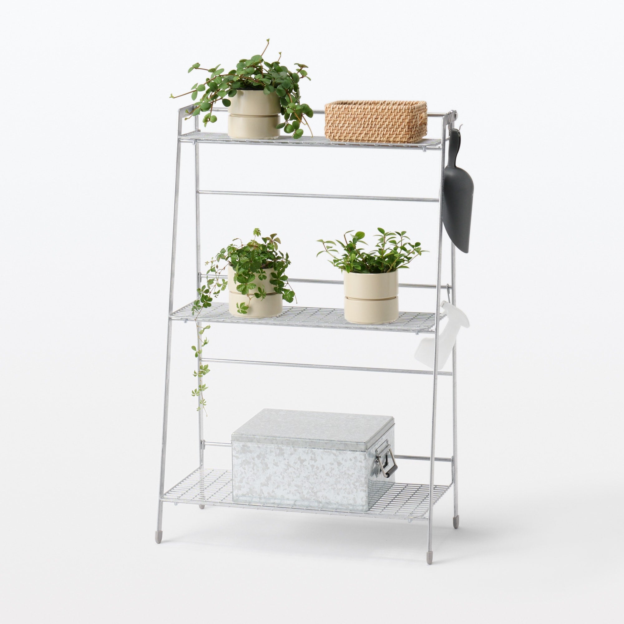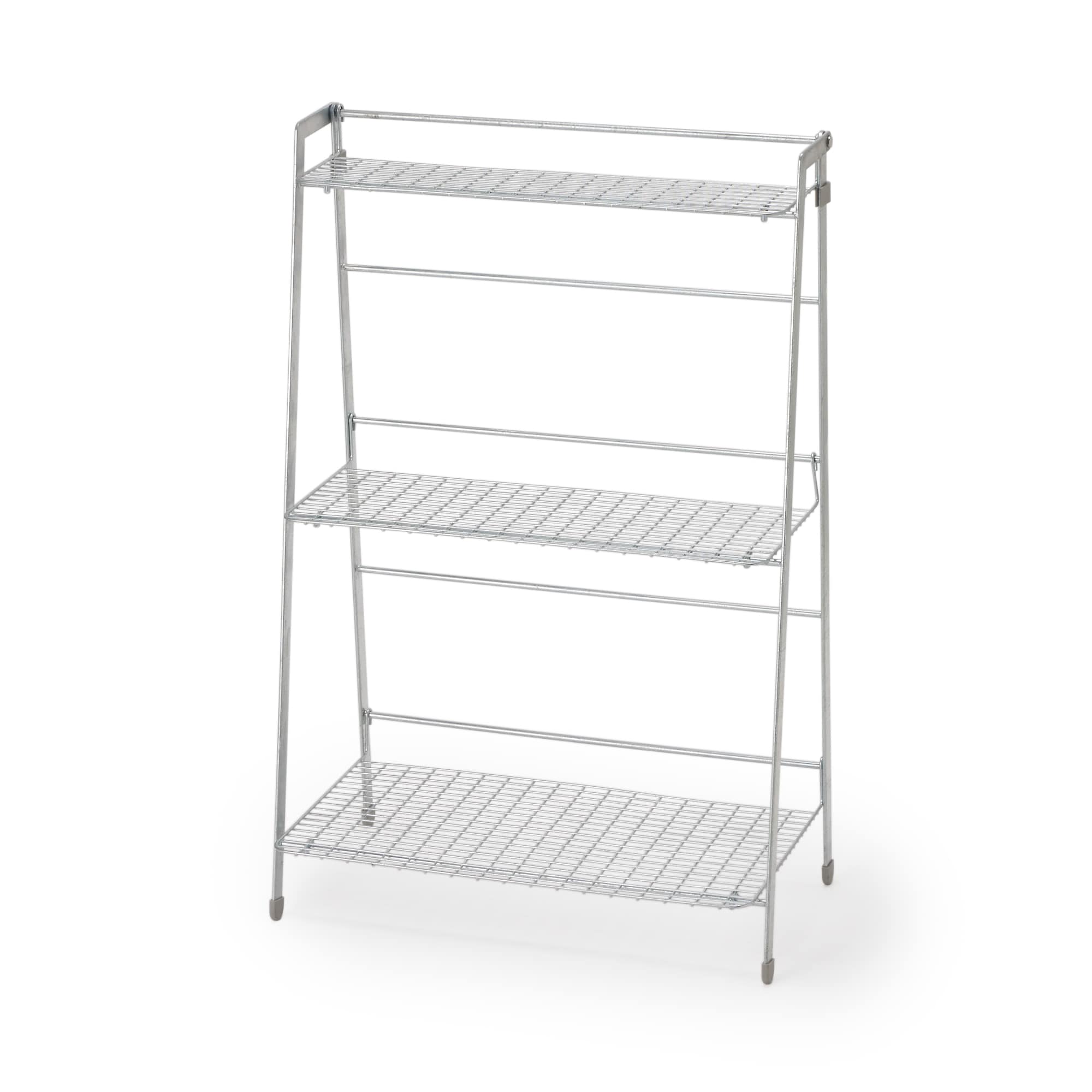 中でも外でも使えるワイヤーラック折りたたみ式3段