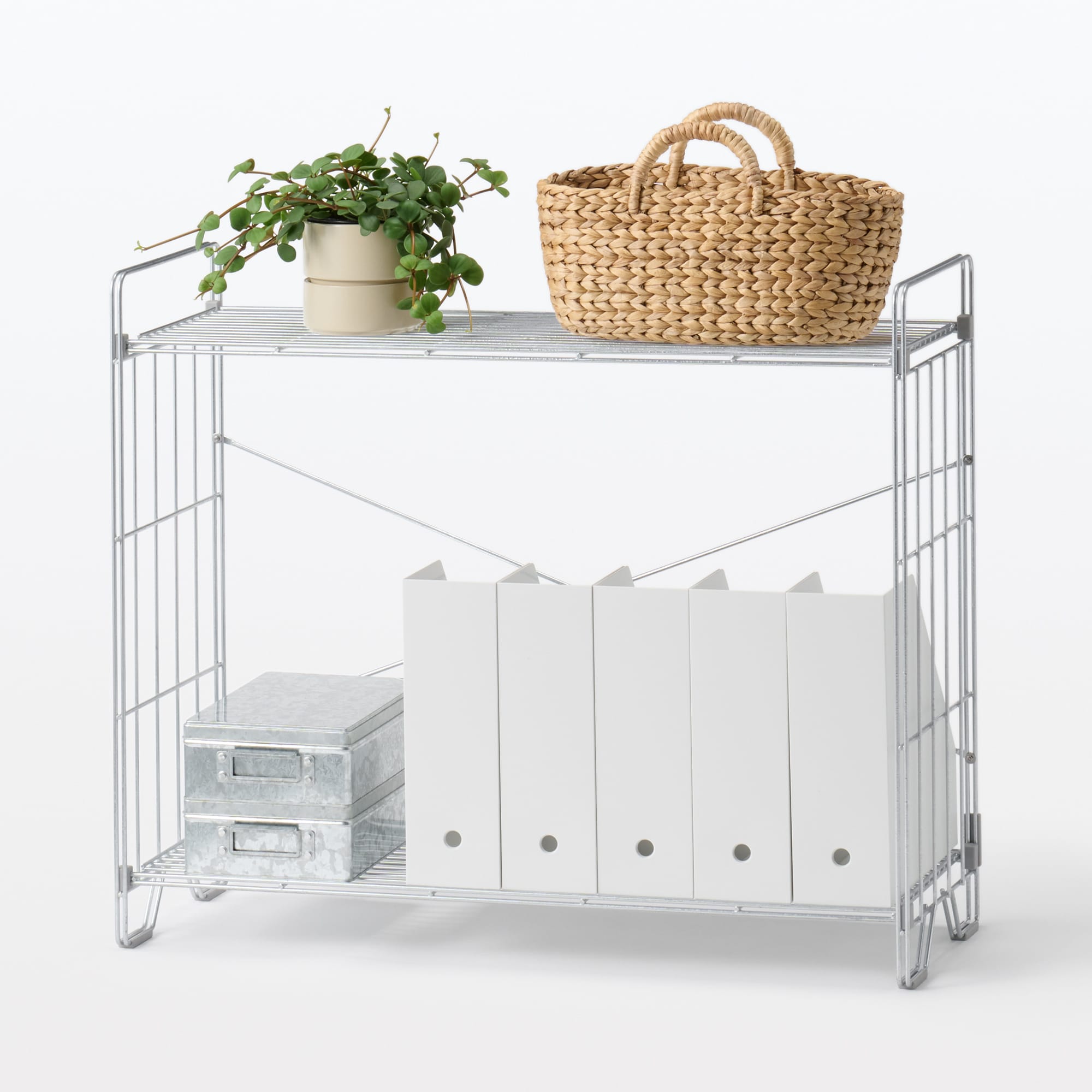 中でも外でも使えるワイヤーラック 2段