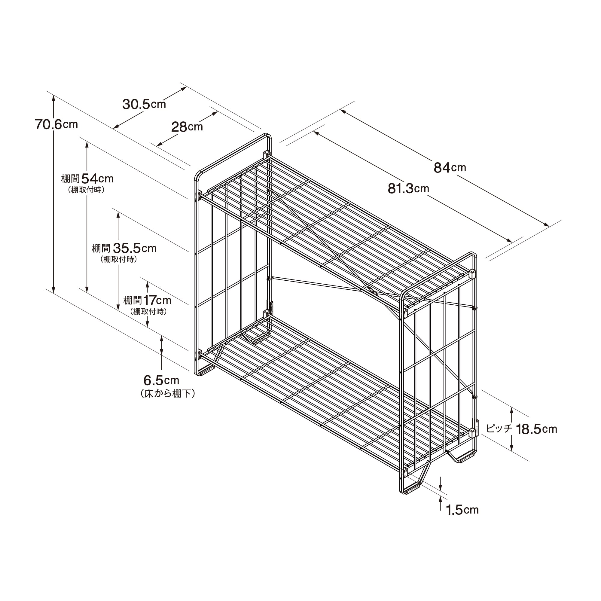 幅 84×奥行 30.5×高さ 70.6cm
