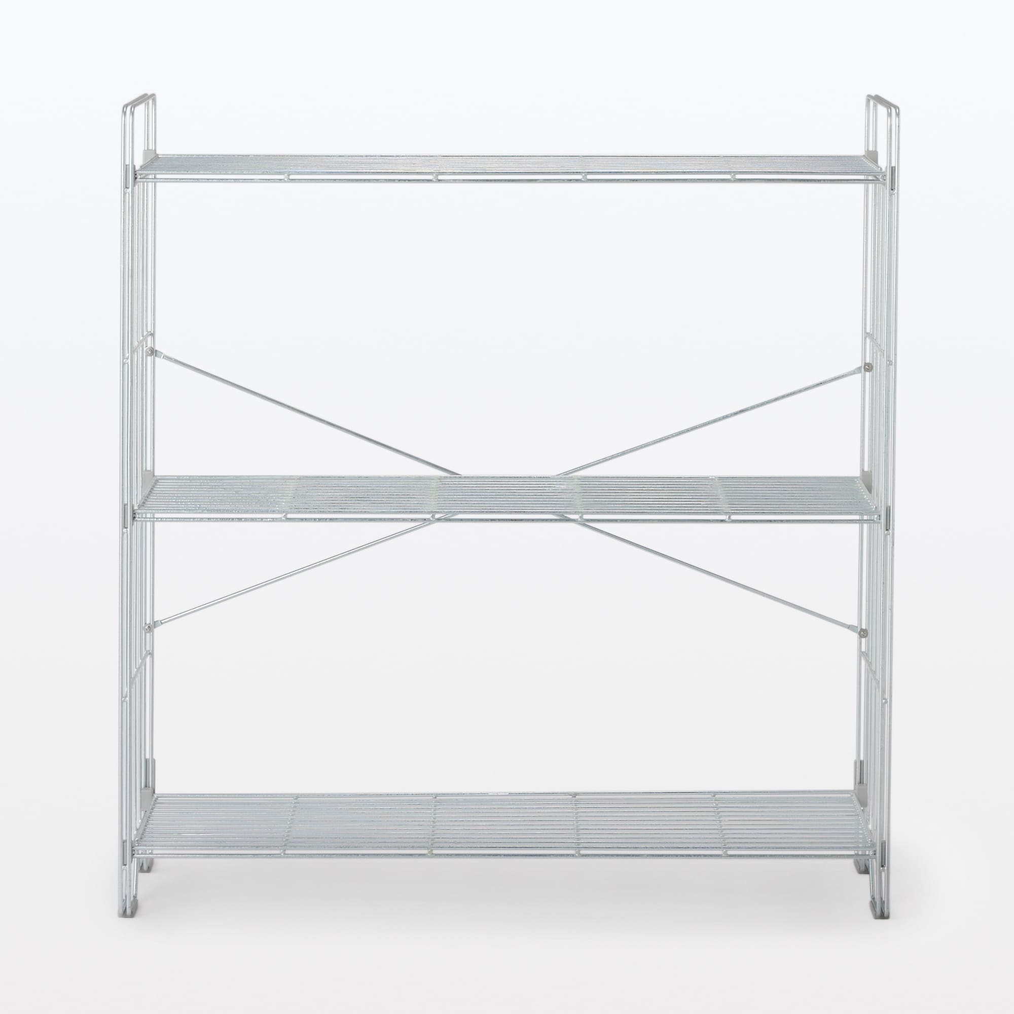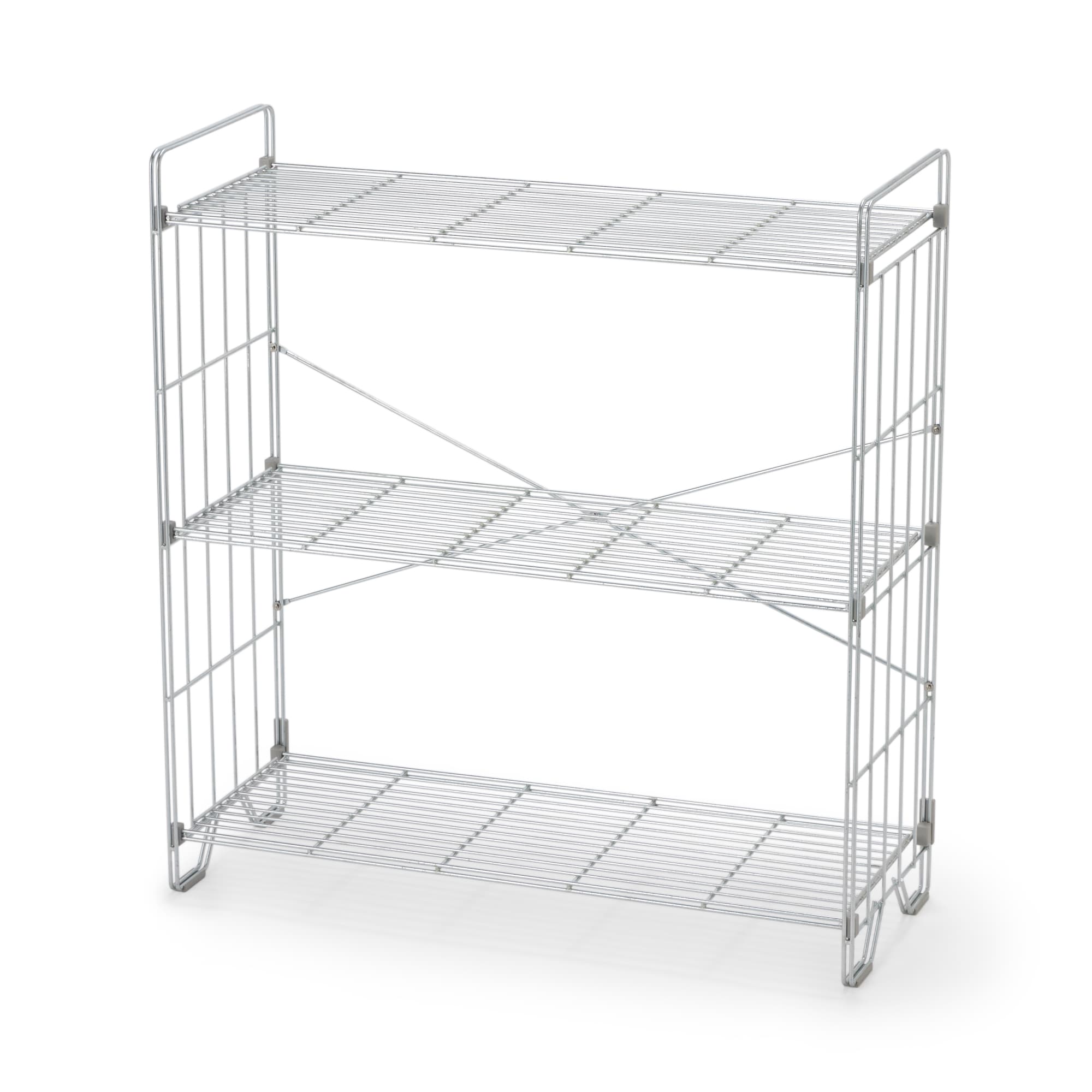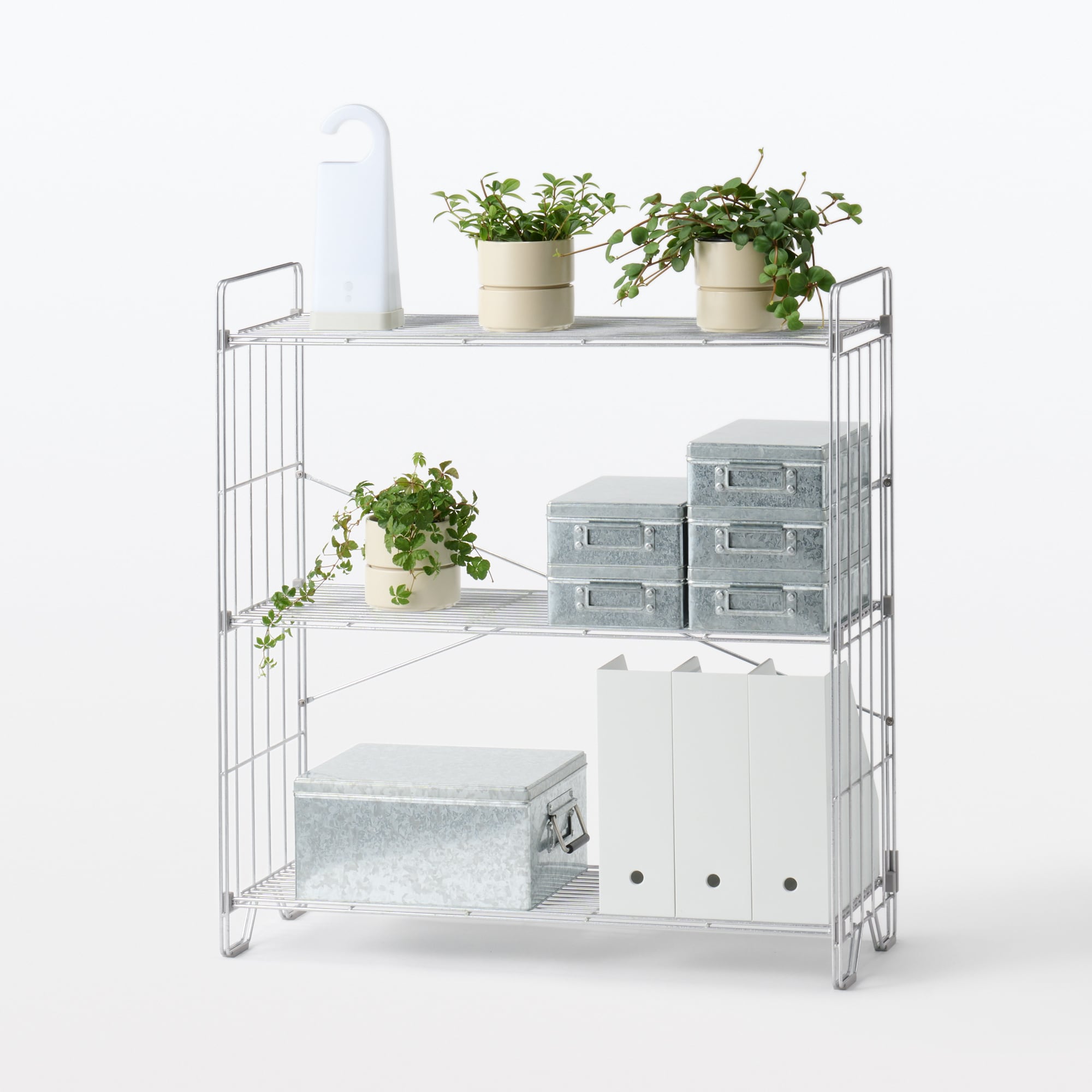 中でも外でも使えるワイヤーラック折りたたみ式3段