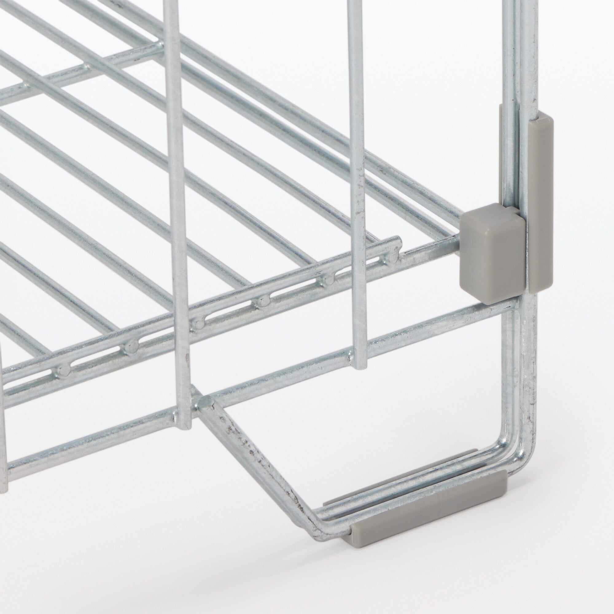 めっき加工で錆びに強く、風通しが良いワイヤーラックなので、ガーデンラックや玄関先の収納にも便利です。奥行が約30cmとすっきりしたサイズ感で、上段と中段は指定の範囲内で好みの高さに取り付けることができます。室内使用時に壁や床を傷つけない保護パーツ付きです。