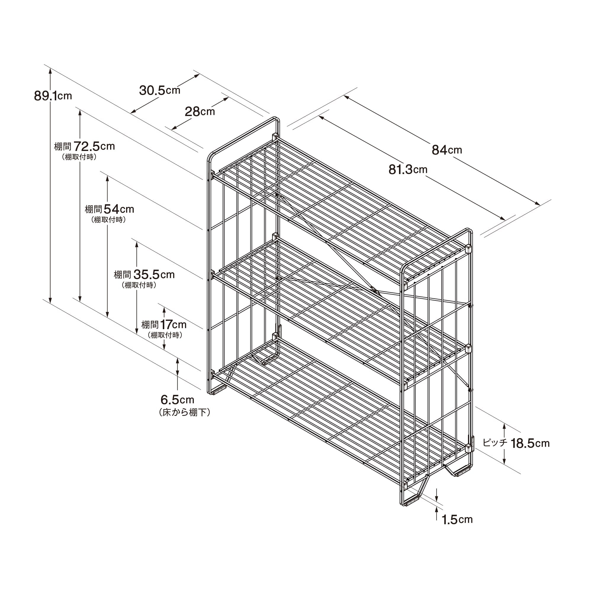 幅 84×奥行 30.5×高さ 89.1cm