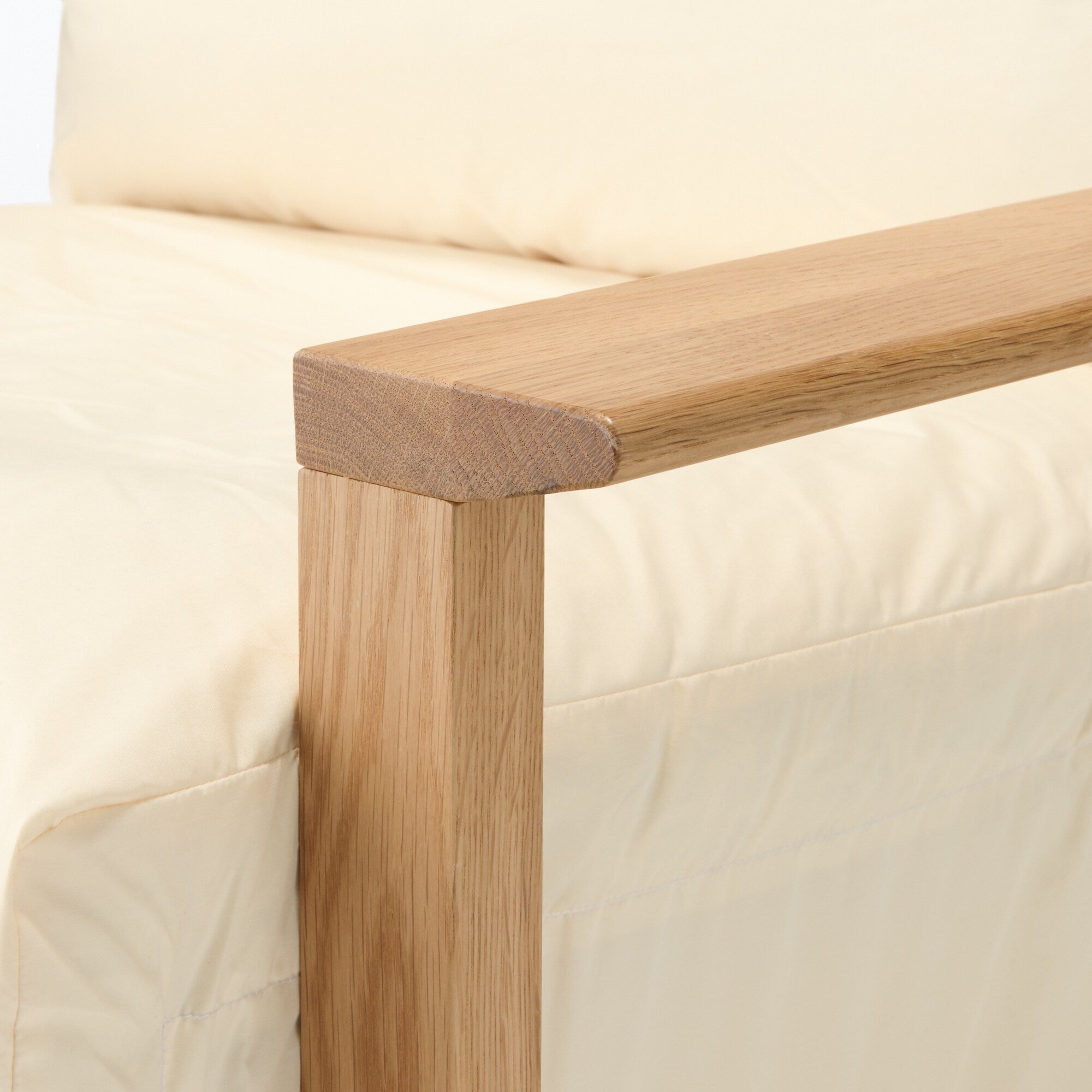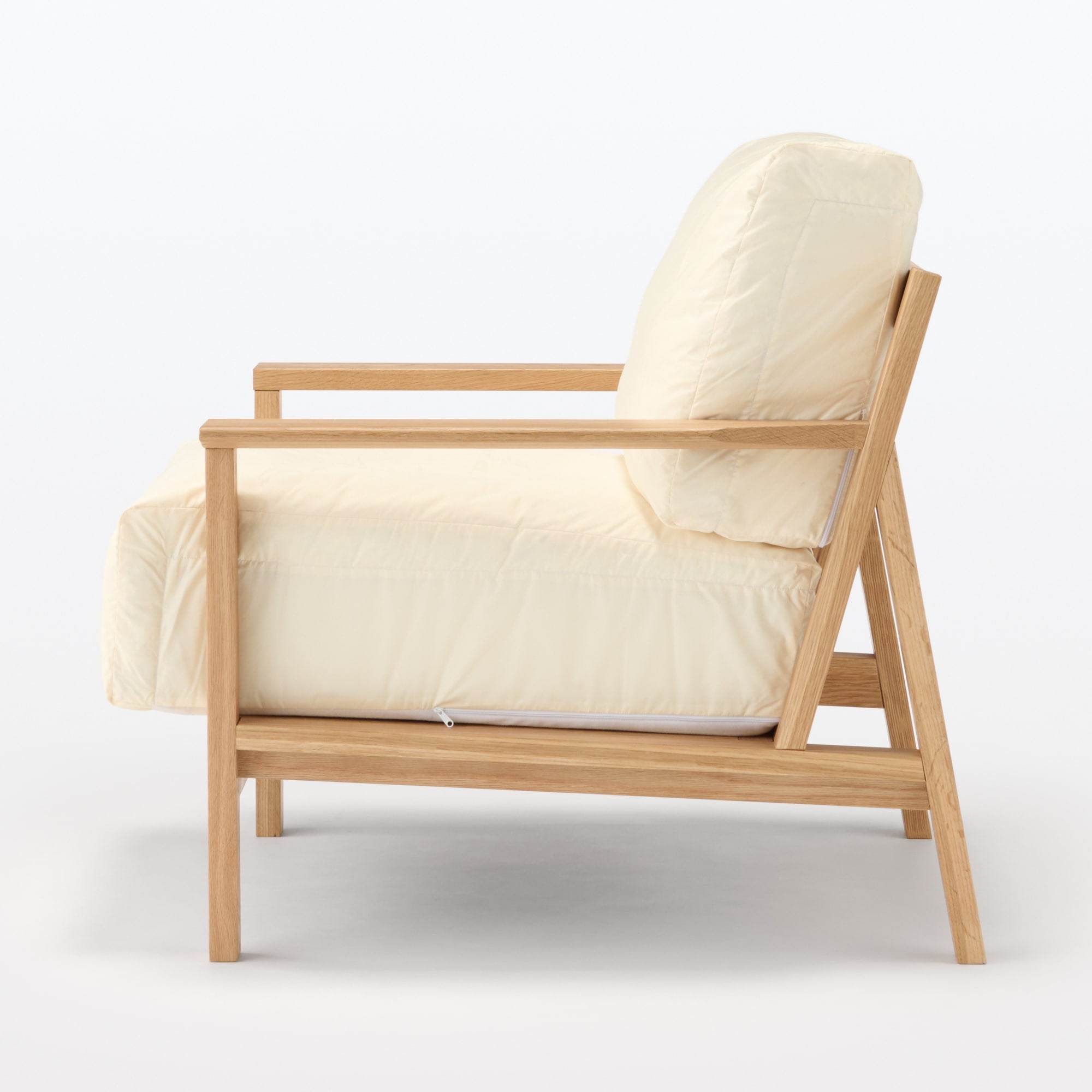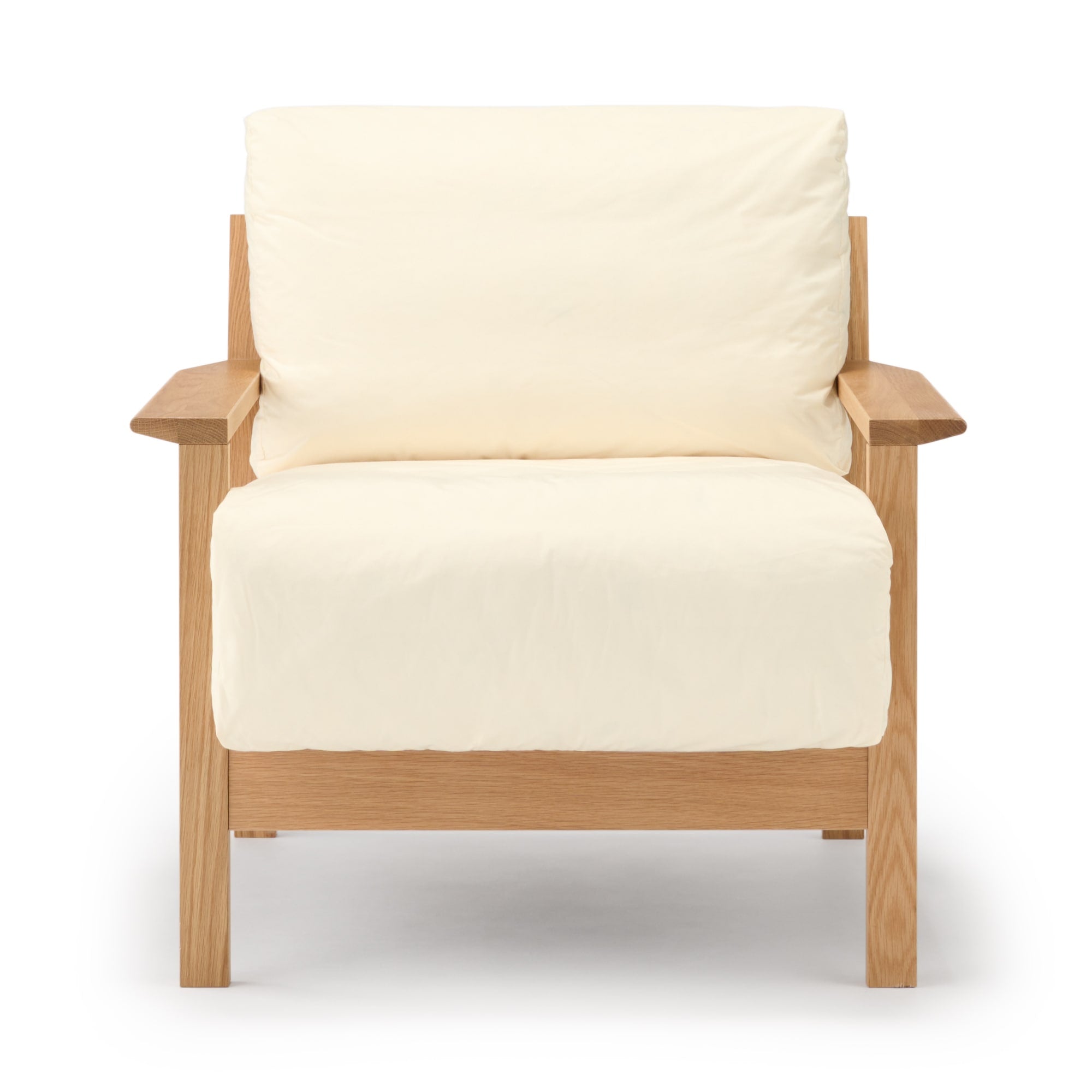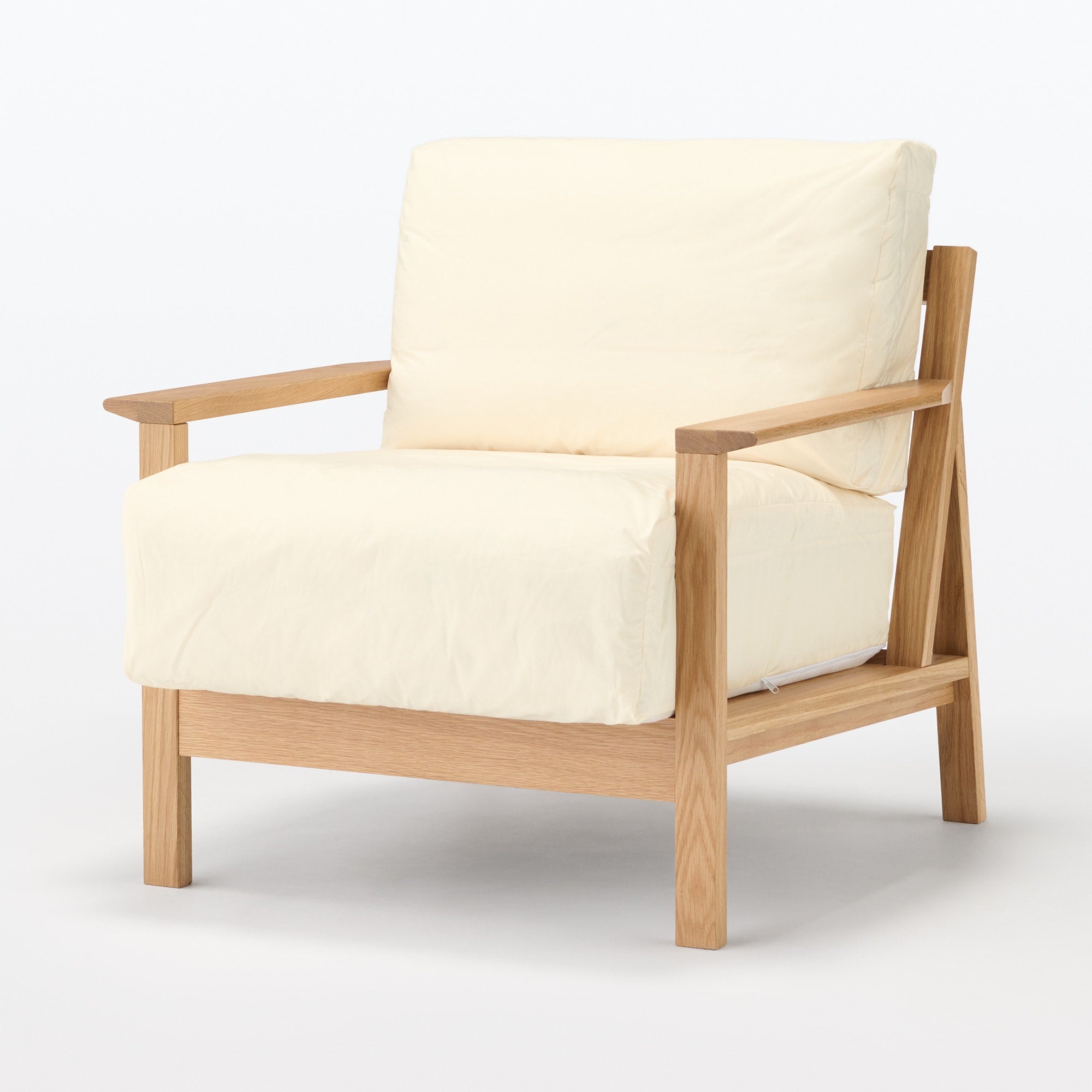 幅67×奥行き75×高さ77cm。木のぬくもりが感じられる木製フレームの「ソファ本体」です。フェザー・ポケットコイル、ウレタン・ポケットコイルの2種類からお好みの座り心地を選べます。組立式で、搬入しやすく、引っ越しなどにも便利です。※座面高42.5cm。別売りのソファカバーを掛けた高さになります。