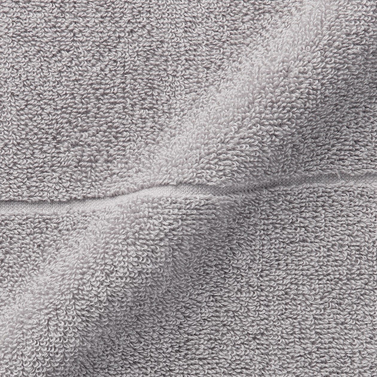 繊維長の長い綿を2本使いにしふっくらと織り上げました。やわらかな肌触りのタオルです。洗濯を繰り返してもふっくら感が続きます。2本の糸(双糸)でパイル立ちが良く、強度と弾力がアップ。古くなった後、バスマットなどに再活用できるようにカットできるラインを入れています。