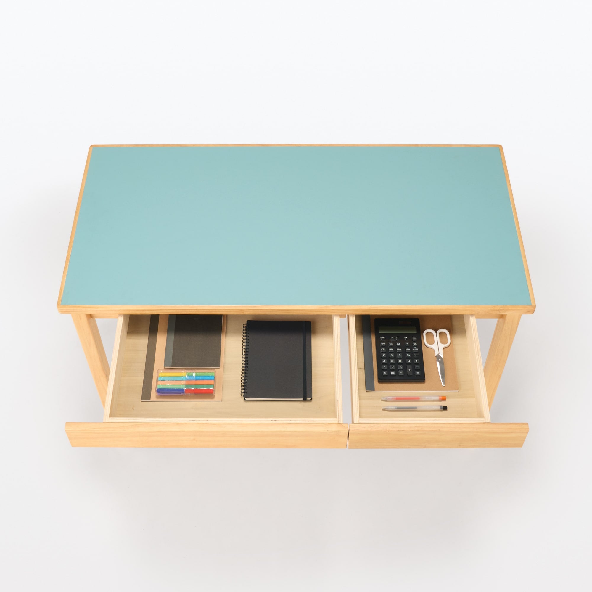 床材にも使用されるリノリウムという素材を天板表面に使用しました。