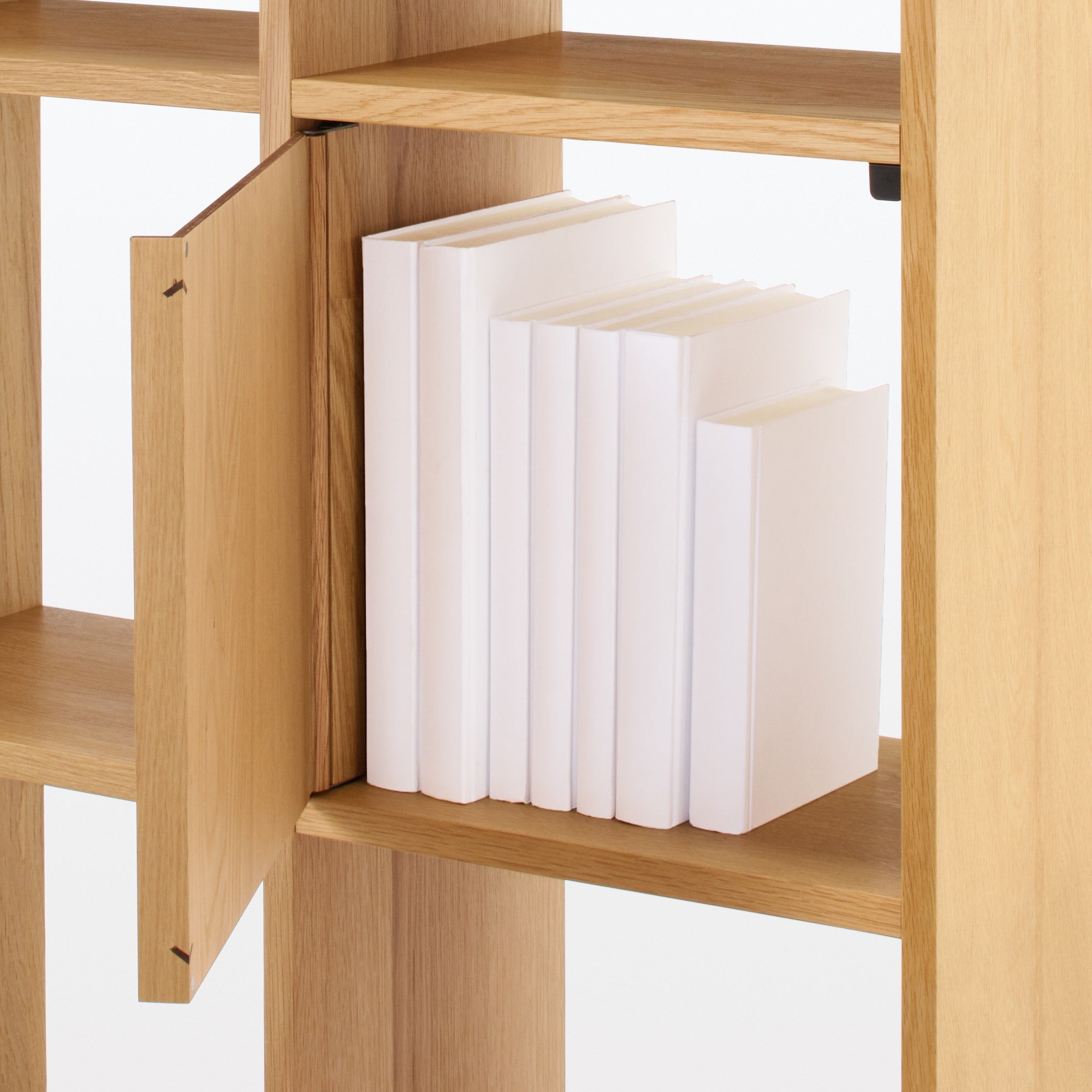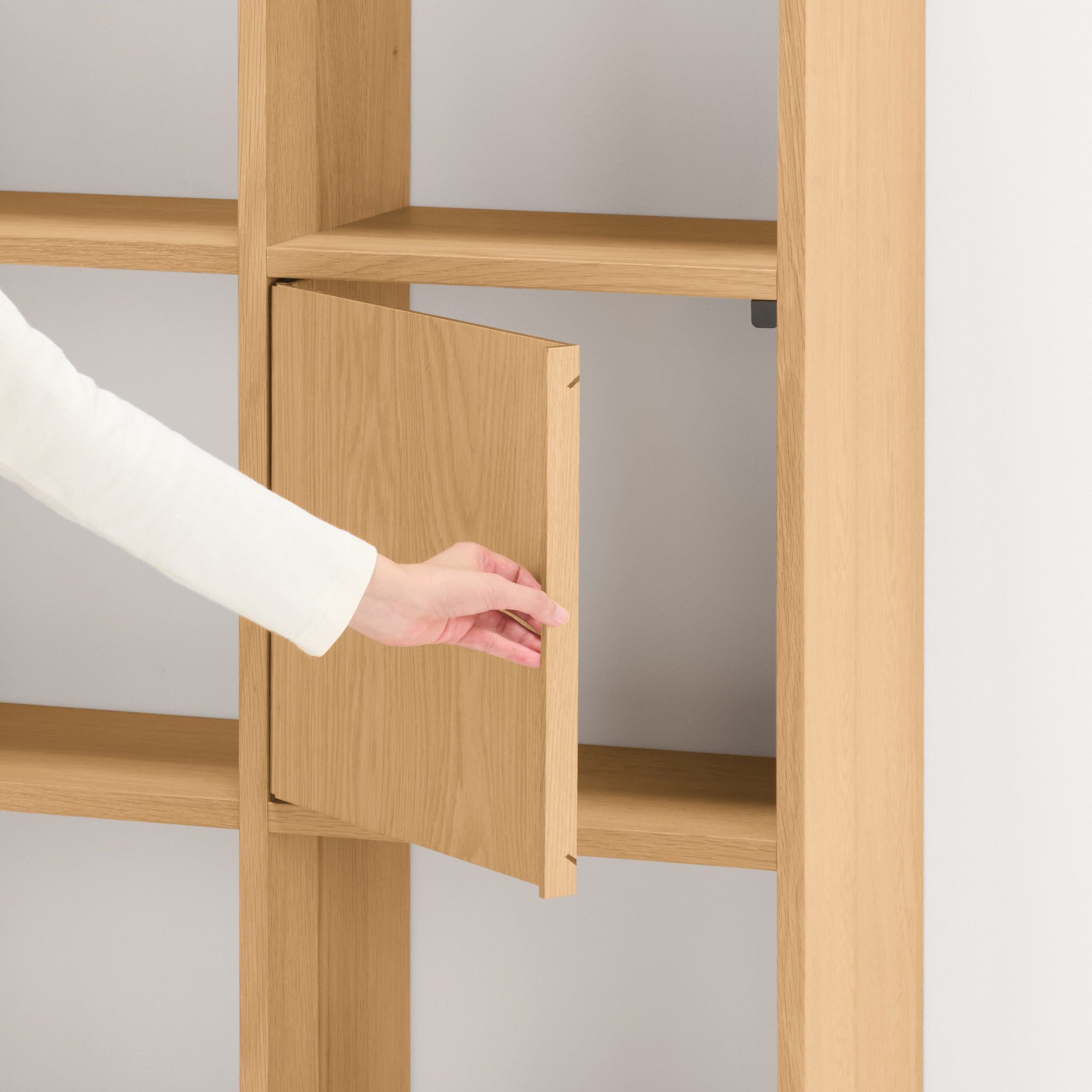 スタッキングシェルフ用の木製扉です。好きなマスに取付が出来ます。取付に面ファスナーを使用しているためお持ちのスタッキングシェルフにも追加することが出来ます。※この商品には突板を使用しています。