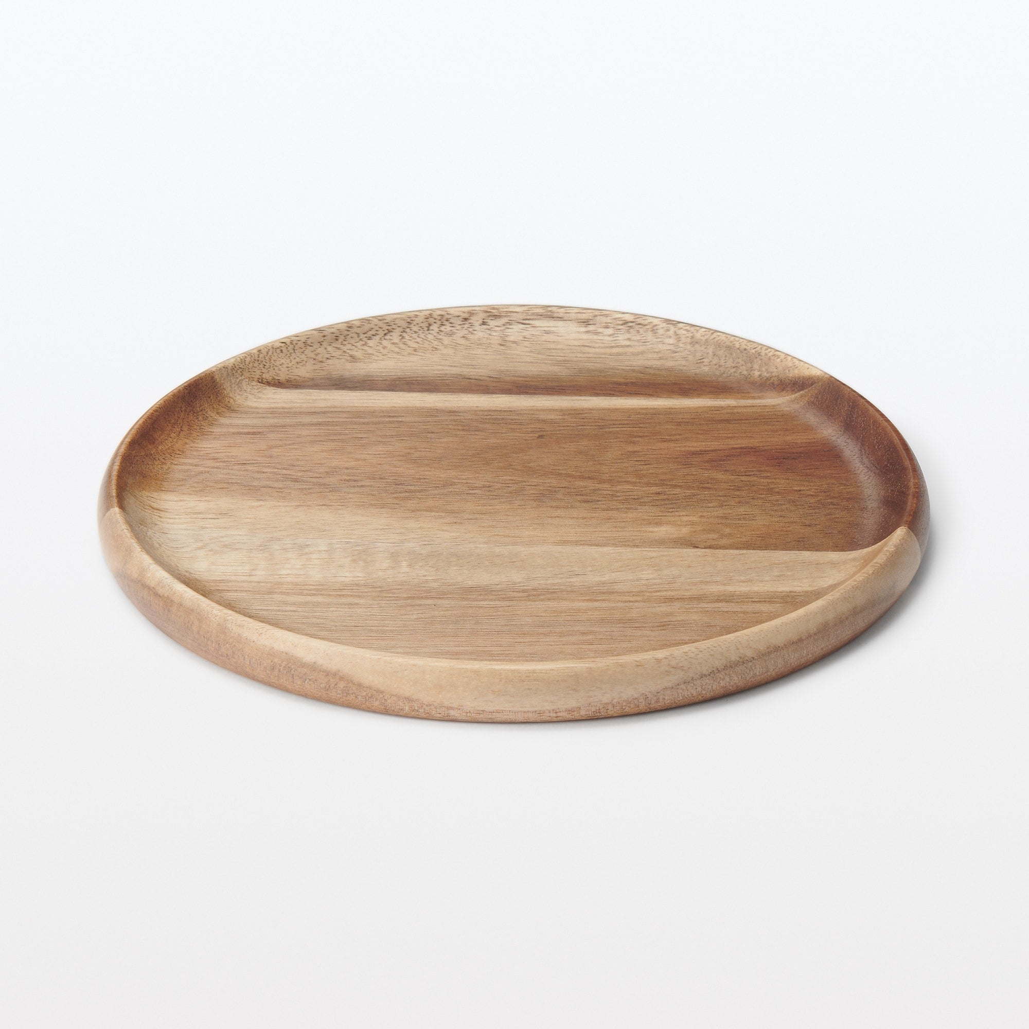 軽量なアカシア材を使用しました。フチ付きで液だれしにくくお皿としても使用できます。