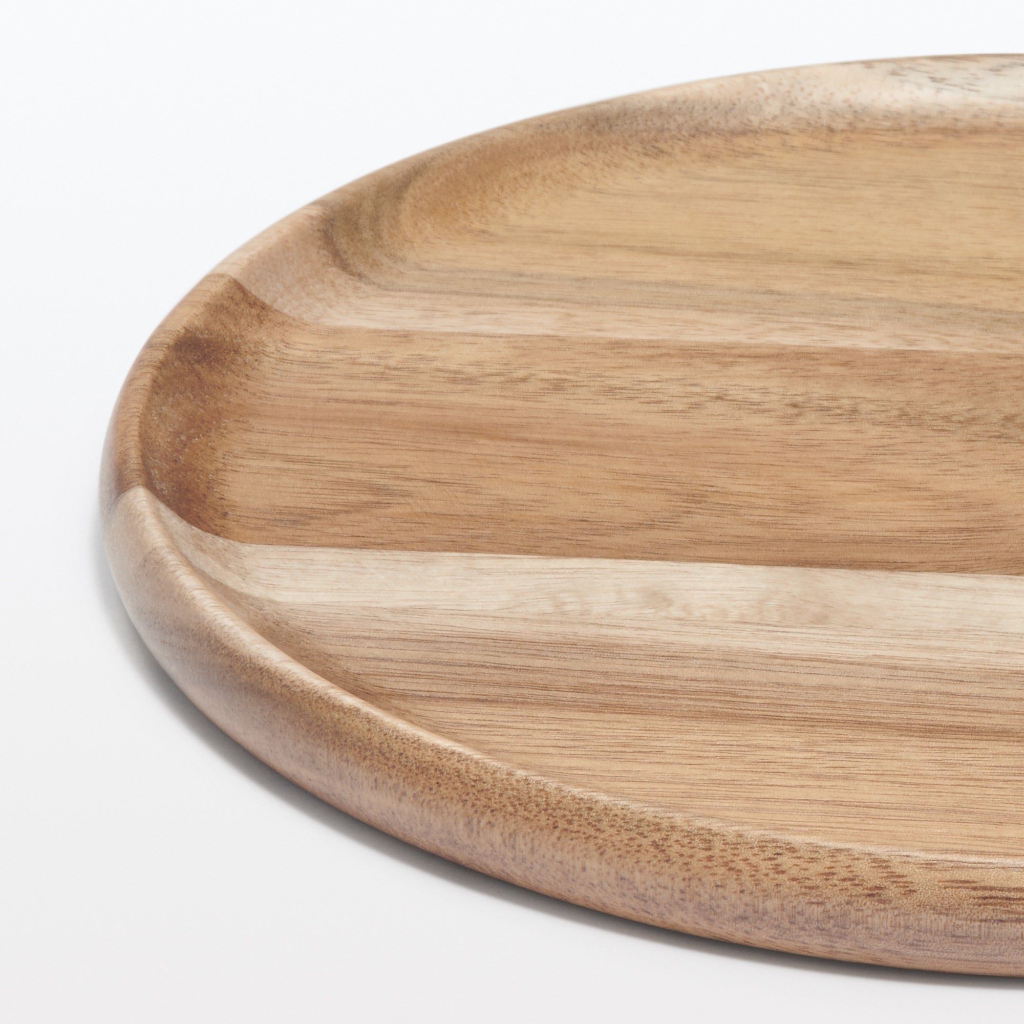 軽量なアカシア材を使用しました。フチ付きで液だれしにくくお皿としても使用できます。