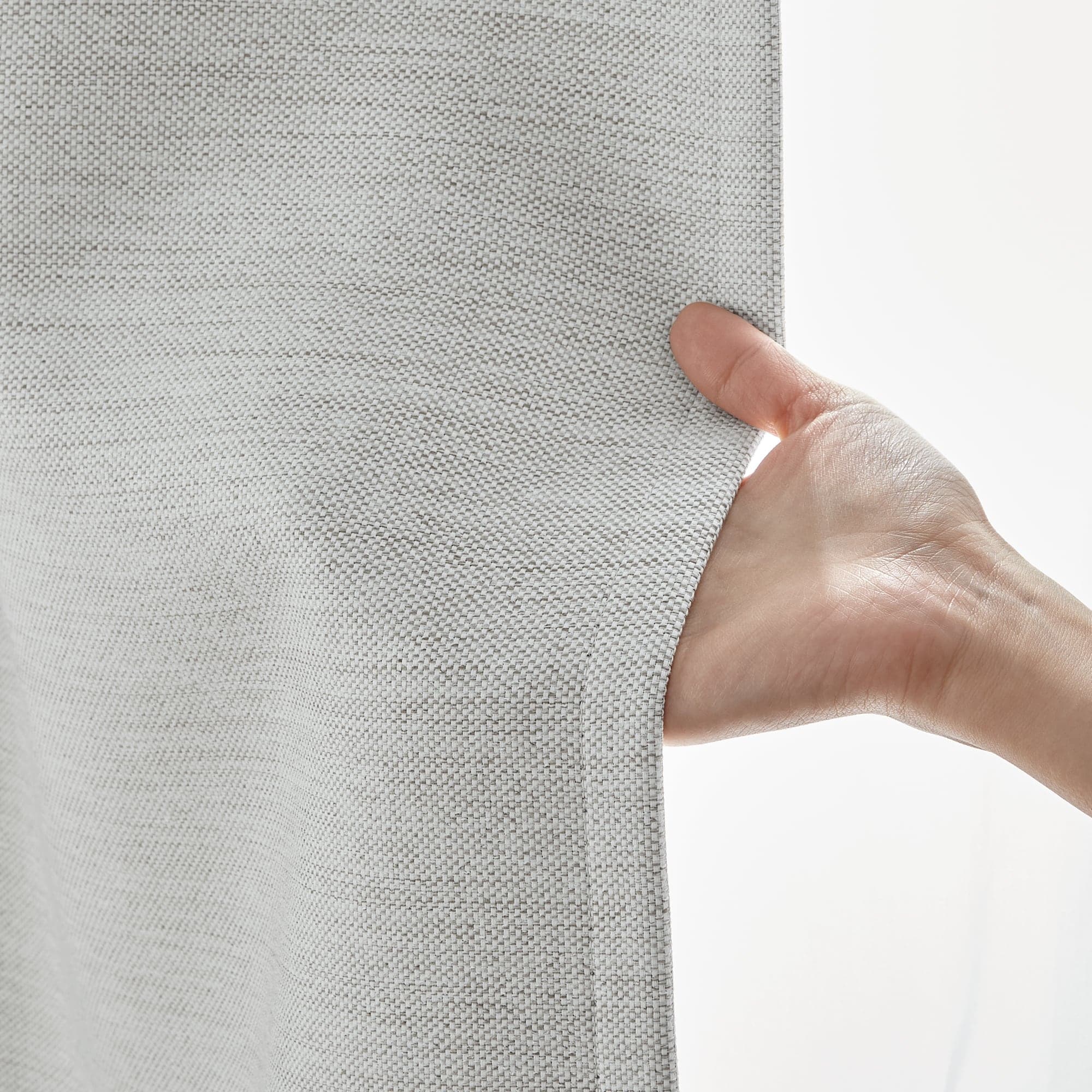 透けにくいポリエステル糸で高密度に織り上げ、遮光性のあるカーテンに仕上げました。防炎機能付です。(1枚入り)