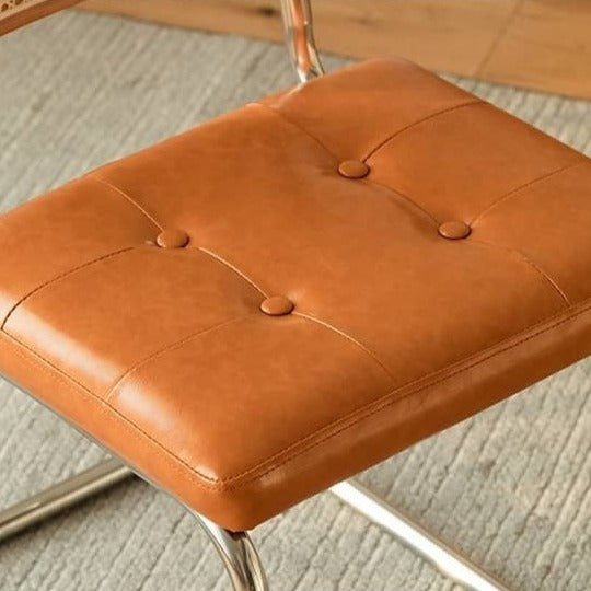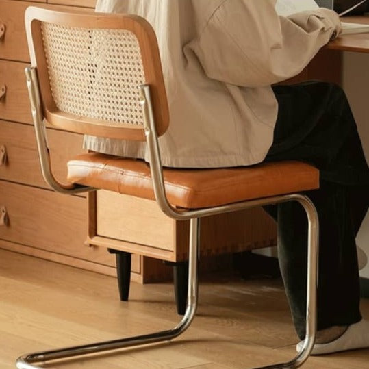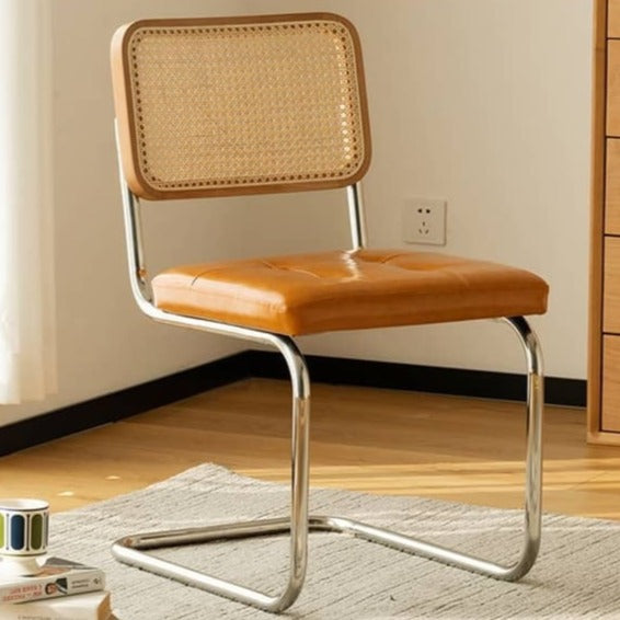 自然の温かみを感じさせるラタンのダイニングチェアです。光沢感のあるステンレス製の脚がナチュラルアイテムに都会的な要素をプラスしています。