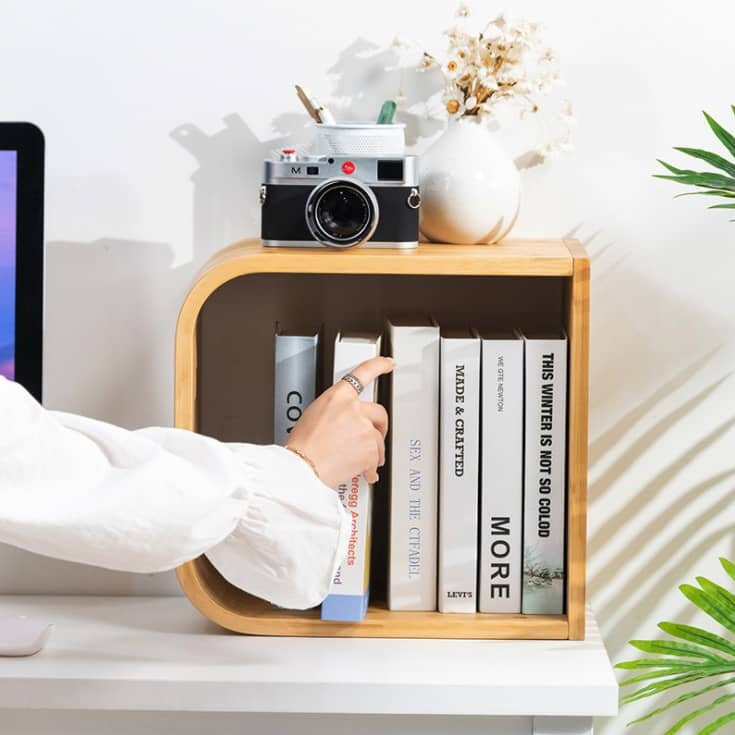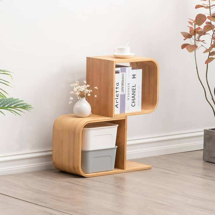 100%竹集成材を使用したオープンシェルフです。スタイリッシュな見た目なのに収納がたくさんできて、とても頑丈です。