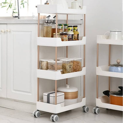 コンパクトなサイズで、キッチンの隙間でも収納できるワゴンです。多段で分類収納ラックとしてスペースを有効活用できます。