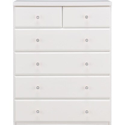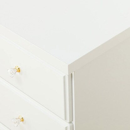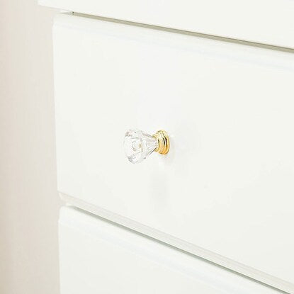 キラキラの取っ手が選べる、愛らしいハイチェスト。もしもの時に倒れにくい構造なので安心です。