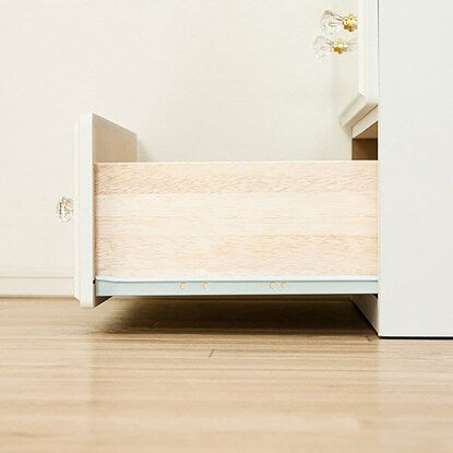 愛らしい見た目で、お子様1人分の衣類ならラクラク収納できる大容量。長引出しはスムーズな開閉ができるスライドレール仕様です。軽い開け心地で、お子様1人でも出し入れが簡単にできます。