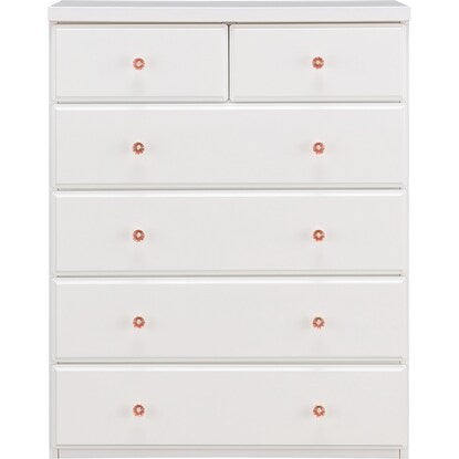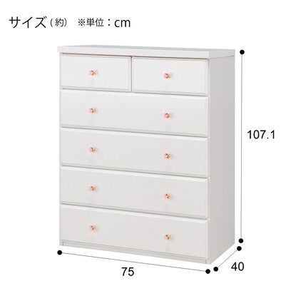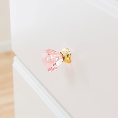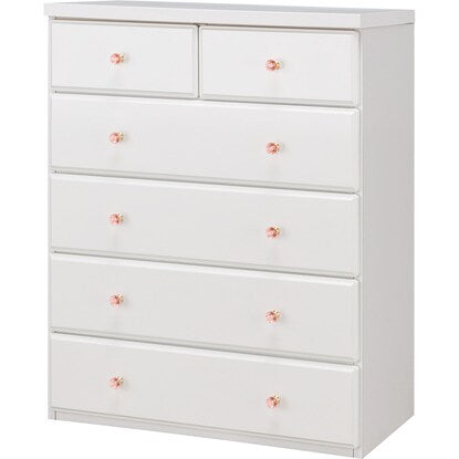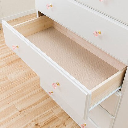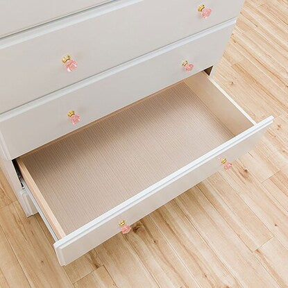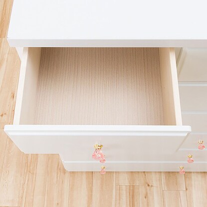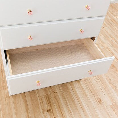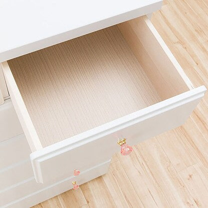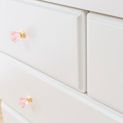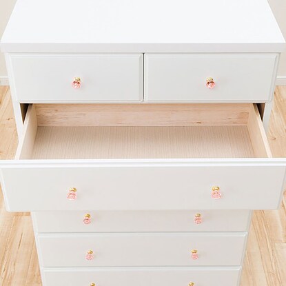 キラキラの取っ手が選べる、愛らしいハイチェスト。もしもの時に倒れにくい構造なので安心です。