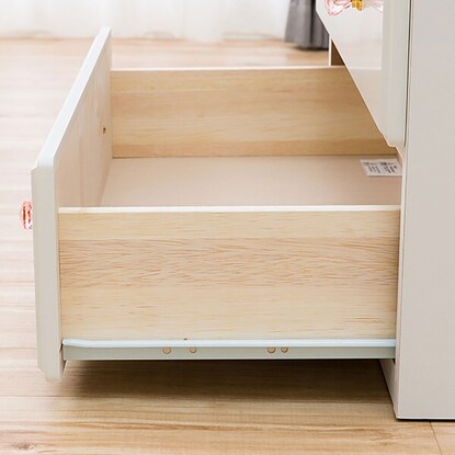 愛らしい見た目で、お子様1人分の衣類ならラクラク収納できる大容量。長引出しはスムーズな開閉ができるスライドレール仕様です。軽い開け心地で、お子様1人でも出し入れが簡単にできます。