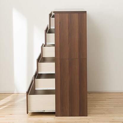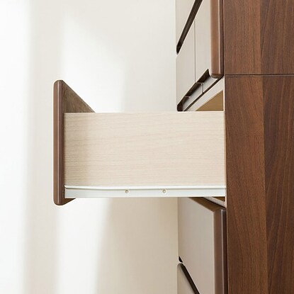 引出し本体は丈夫な箱組み構造で、前板はネジ留め加工を施し外れにくくなっています。
