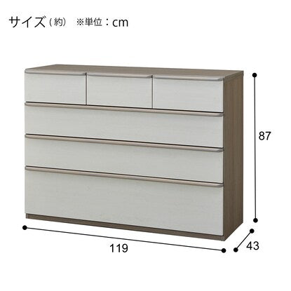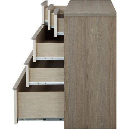 丸みのある取っ手がやさしい印象の、ツートンカラーのローチェストです。