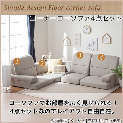ローソファでお部屋を広く見せられる!4点セットなのでレイアウト自由自在です。