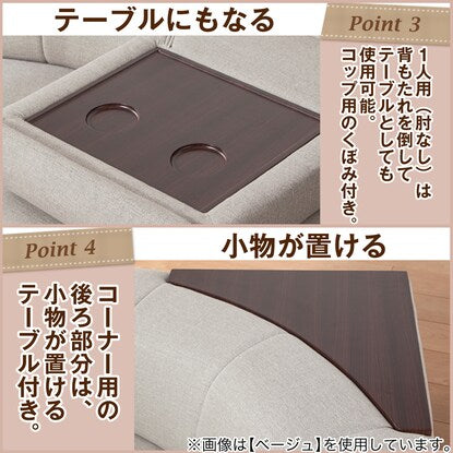 コーナー用の後ろ部分は、小物が置けるテーブル付き。