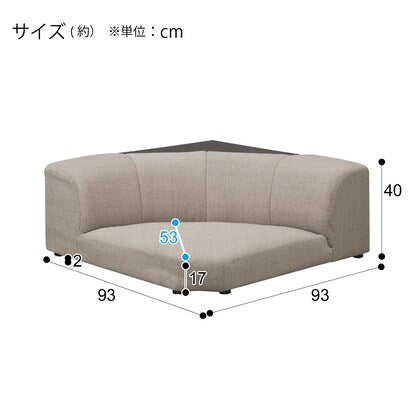 座面がロータイプなのでこたつにも使えます。 座面高17cmのロータイプソファ。 耐久性の良いS字バネを使用。 コーナー用の後ろ部分は、小物が置けるテーブル付き。【詳細サイズ(約)】 ■座面高:17cm ■座面:奥行58cm ■脚の高さ:2cm【表面素材とお手入れ方法】 布 (温かみがありコ-ディネ-トするには適しています。)お手入れ方法 (ゴミや汚れは掃除機で吸い取るか、柔らかなブラシを使ってください。しつこい汚れには中性洗剤を薄めた液を浸した布を柔らかく絞り、叩くように汚れを落とします。その後、洗剤が残らないように、水を絞った布でよくふき取ります。)【座面スプリングと特長】 S型スプリング (S字状に波打たせたバネを並列にアーチ上に配したもので、最も一般的なスプリングです。)【梱包サイズ(約)】 ■幅96×奥行96×高さ40cm※イメージ画像の場合、使用している小物等は演出品です。